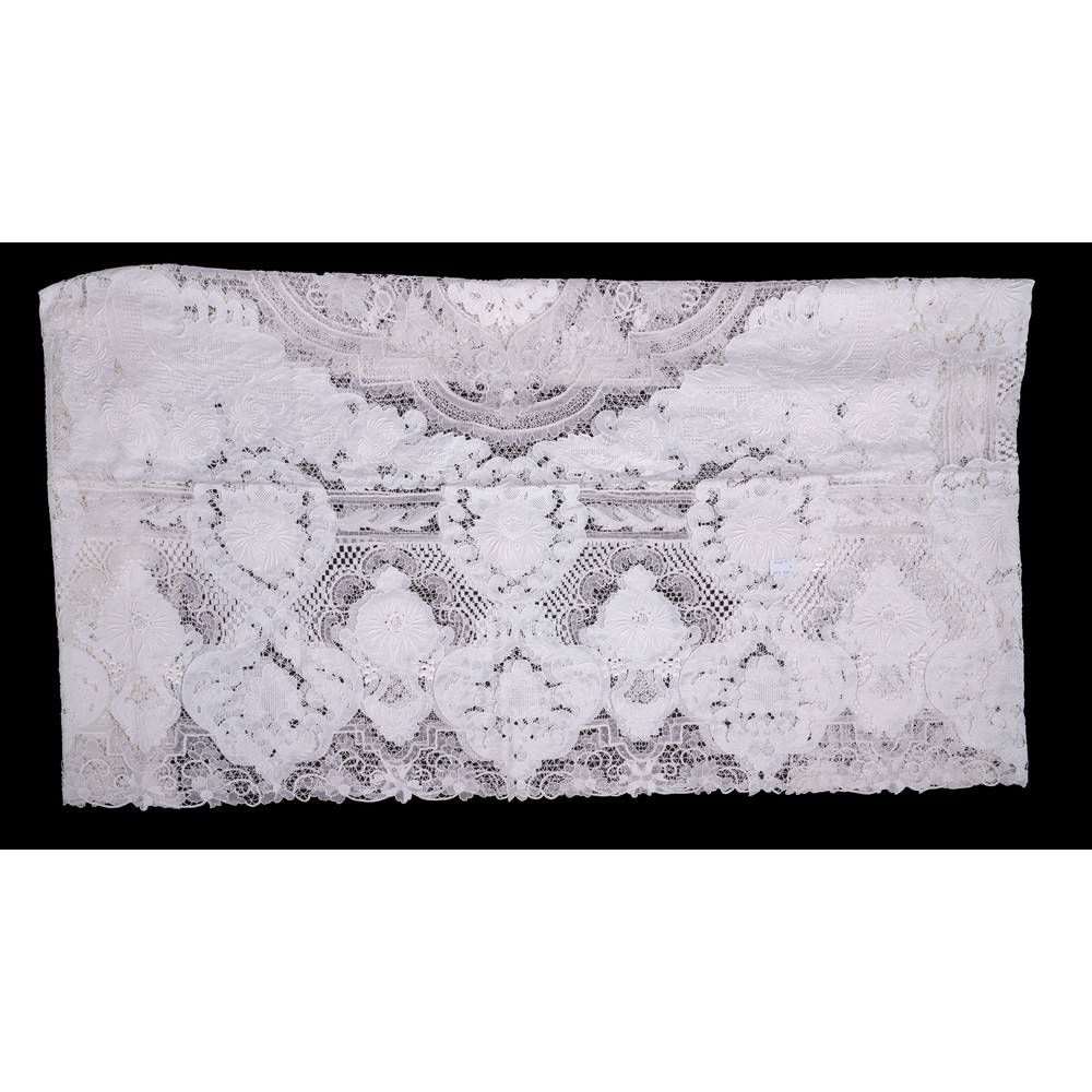 COPRILETTO in lino nei toni del bianco riccamente ricamato a mano con applicazioni in pizzo Burano.