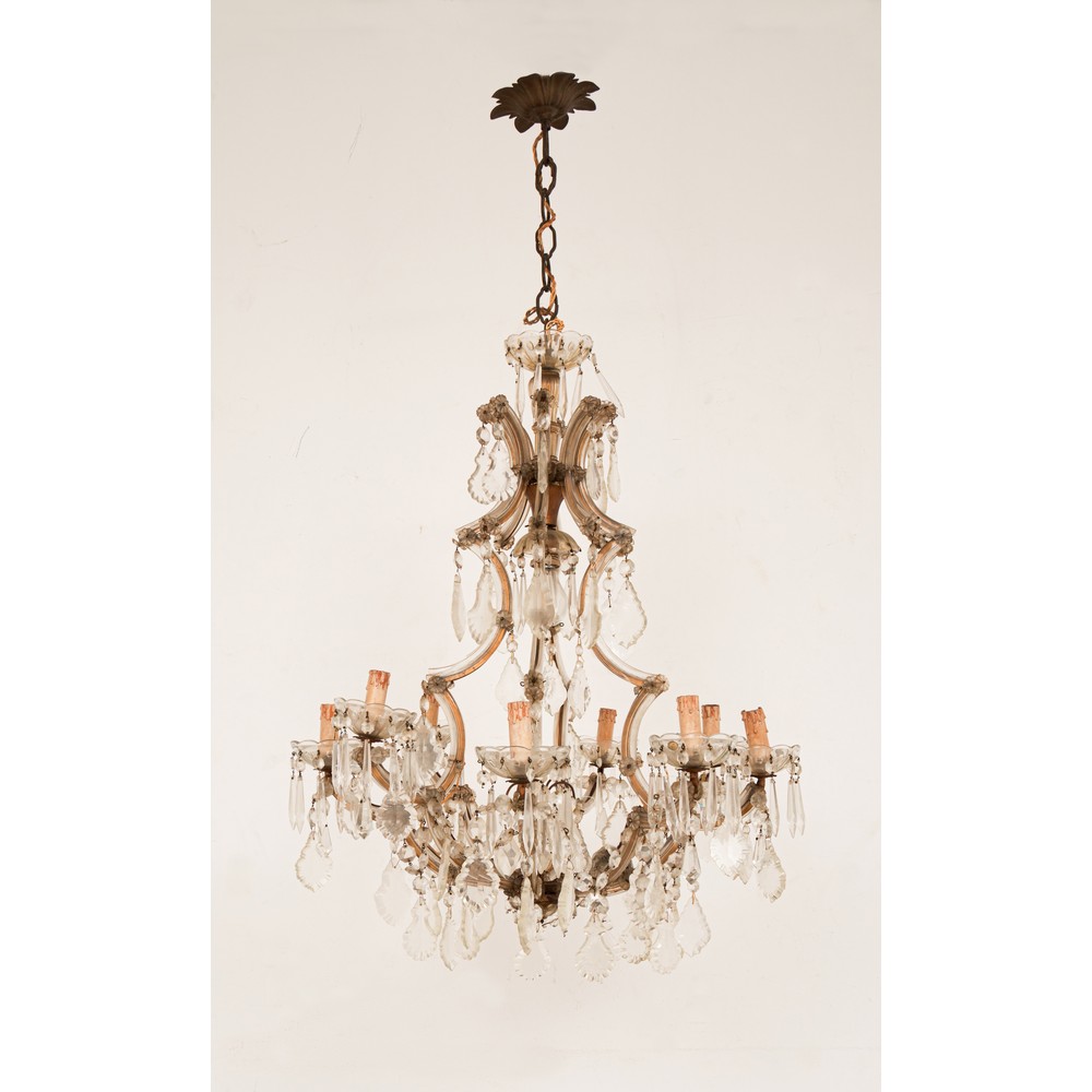 LAMPADARIO Maria Teresa in ferro e vetro a nove luci.