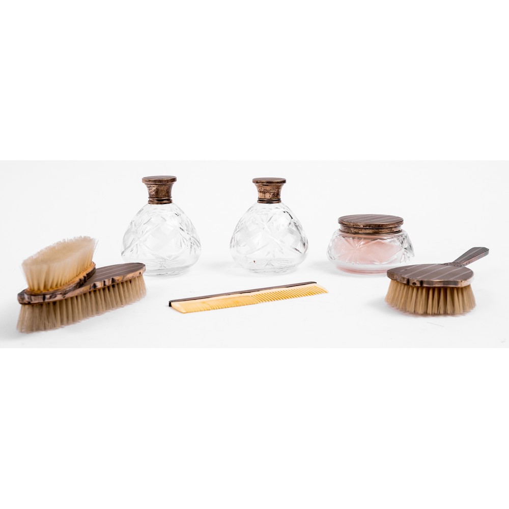 SERVIZIO DA TOLETTA composto da due spazzole, pettine, portaprofumo e portaborotalco.