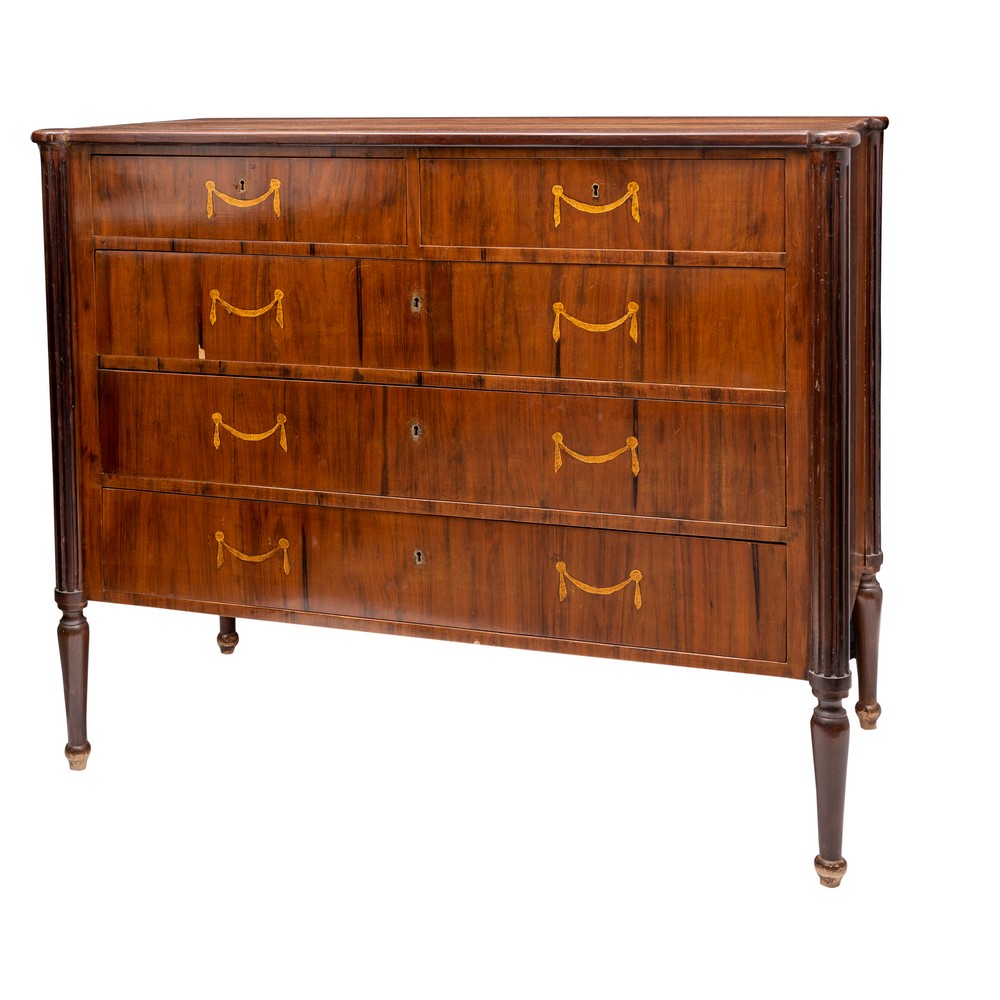 CASSETTONE stile direttorio in legno di palissandro con tarsie in bosso.