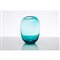 Vaso in vetro soffiato nei toni blu, corpo cilindrico, bocca piana inclinata.