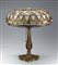Lampada da tavolo con base in bronzo, diffusore in vetro a piombo, 1900...