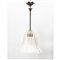 Lampada a sospensione ad una luce in vetro bullicante e costolato, diffusore luminoso a campana, bordo ondulato.