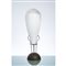 Lampada da tavolo ad una luce, struttura in metallo cromato, diffusore a goccia in vetro lattato e baccellato. Etichetta di produzione.