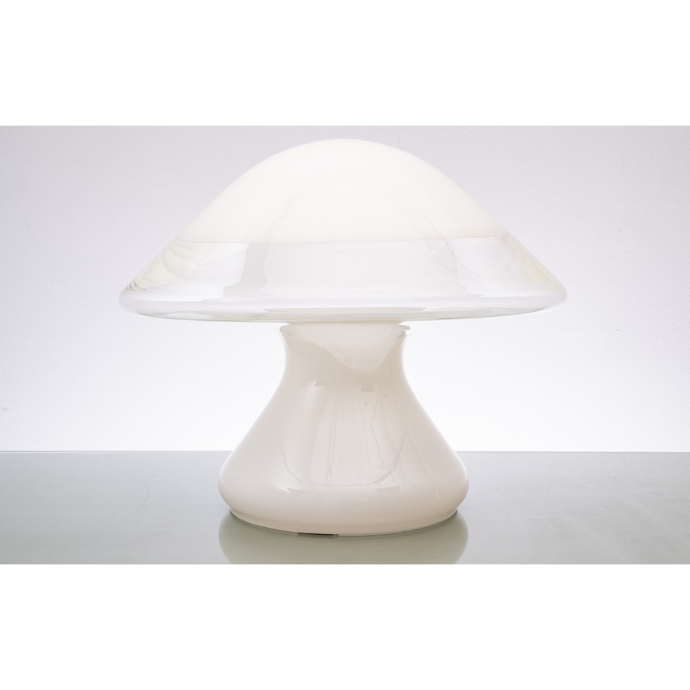 Lampada da tavolo “Mushroom” ad una luce, in vetro opale e trasparente.