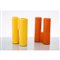 Un vaso composto da due elementi cilindrici ad incastro in ceramica, uno arancione ed uno giallo.