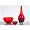 Due ciotole semiglobulari e un vaso a bottiglia solifleur in vetro sommerso nei toni del rosso.