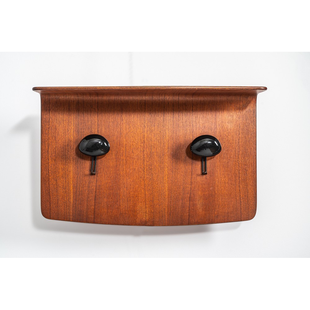 Appendi abiti in compensato curvato, due appendini in ceramica smaltata nera.
