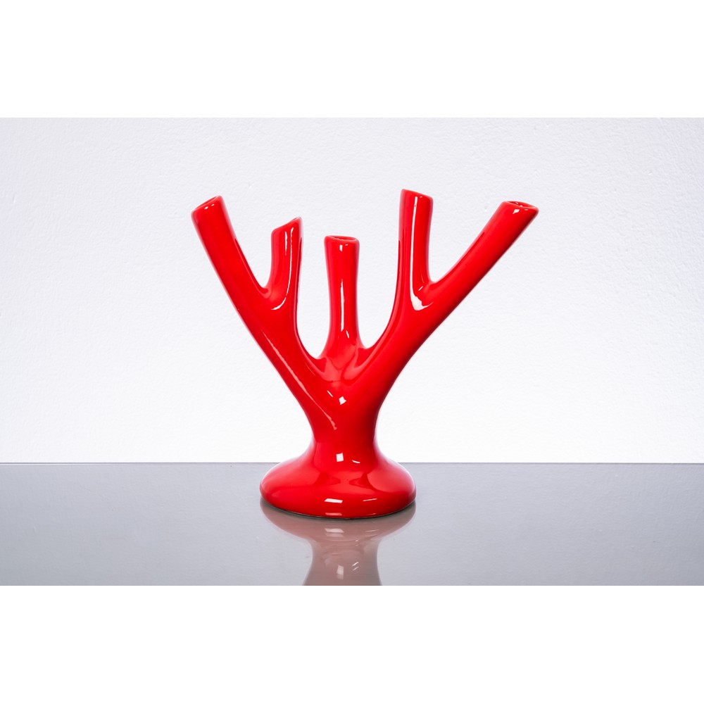 Un vaso in ceramica rossa, corpo a ramo di corallo con cinque tralci.