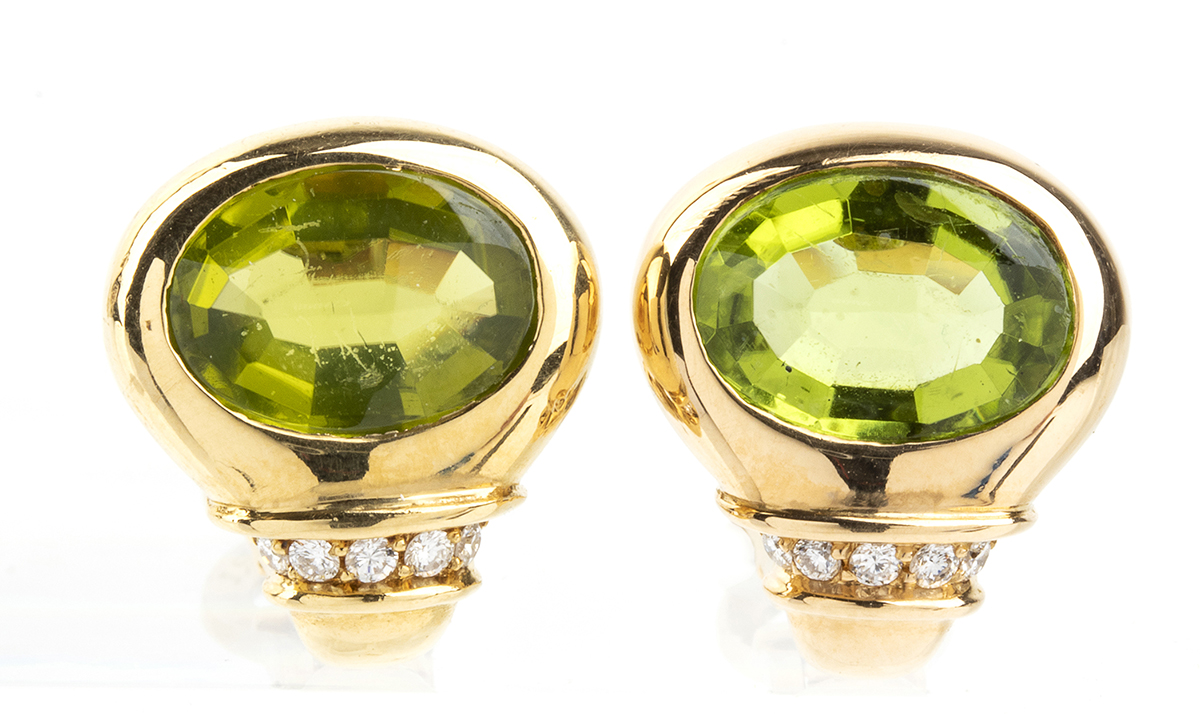 Lot 7 | Orecchini in oro, peridoti e diamanti - manifattura BULGARI