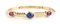 oro giallo 18k, sezione superiore rigida, incastonata con cabochon di zaffiro affiancato da coppia di tormaline. Punzonato "BVLGARI - 750 - 150 ROMA".