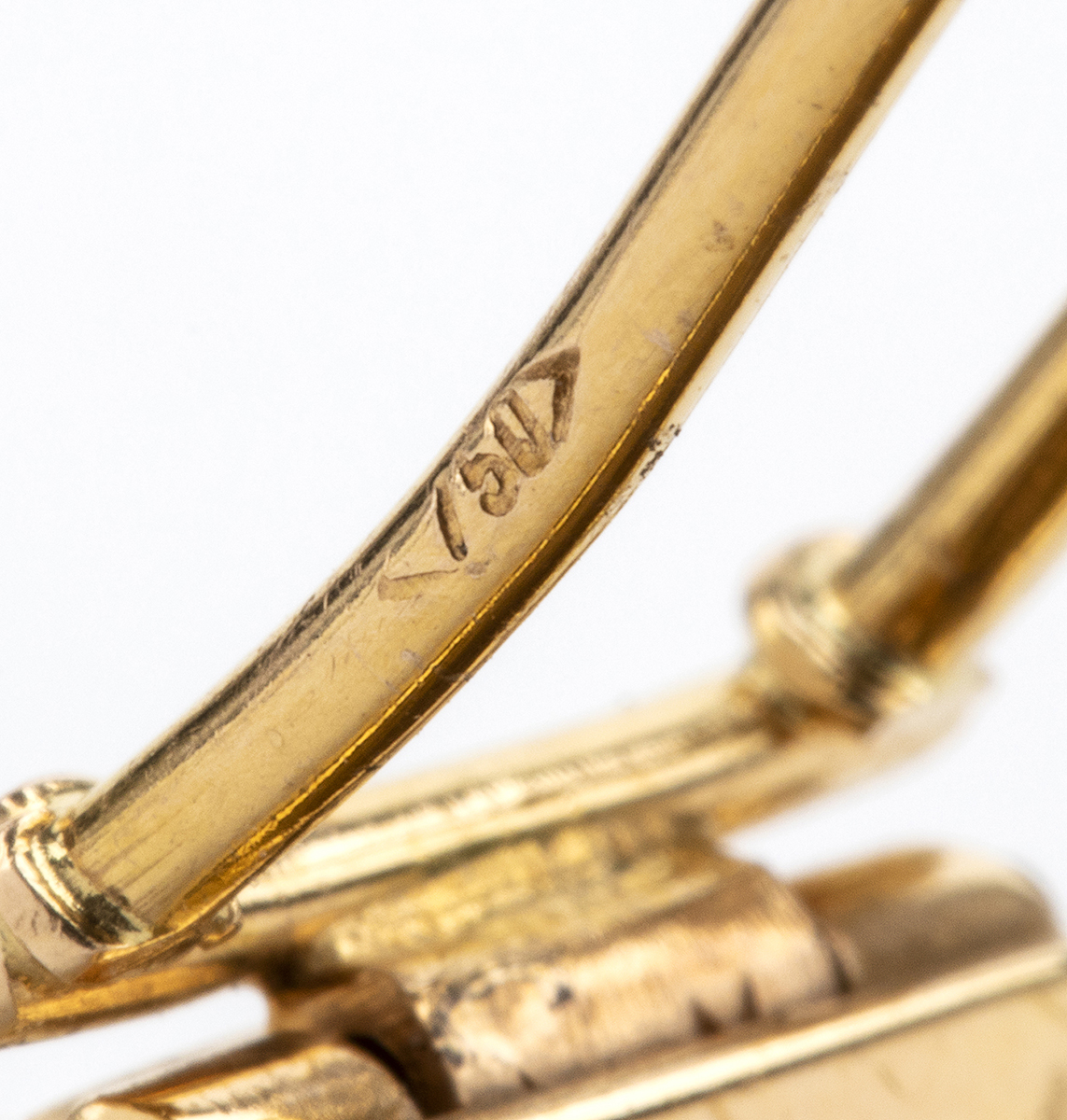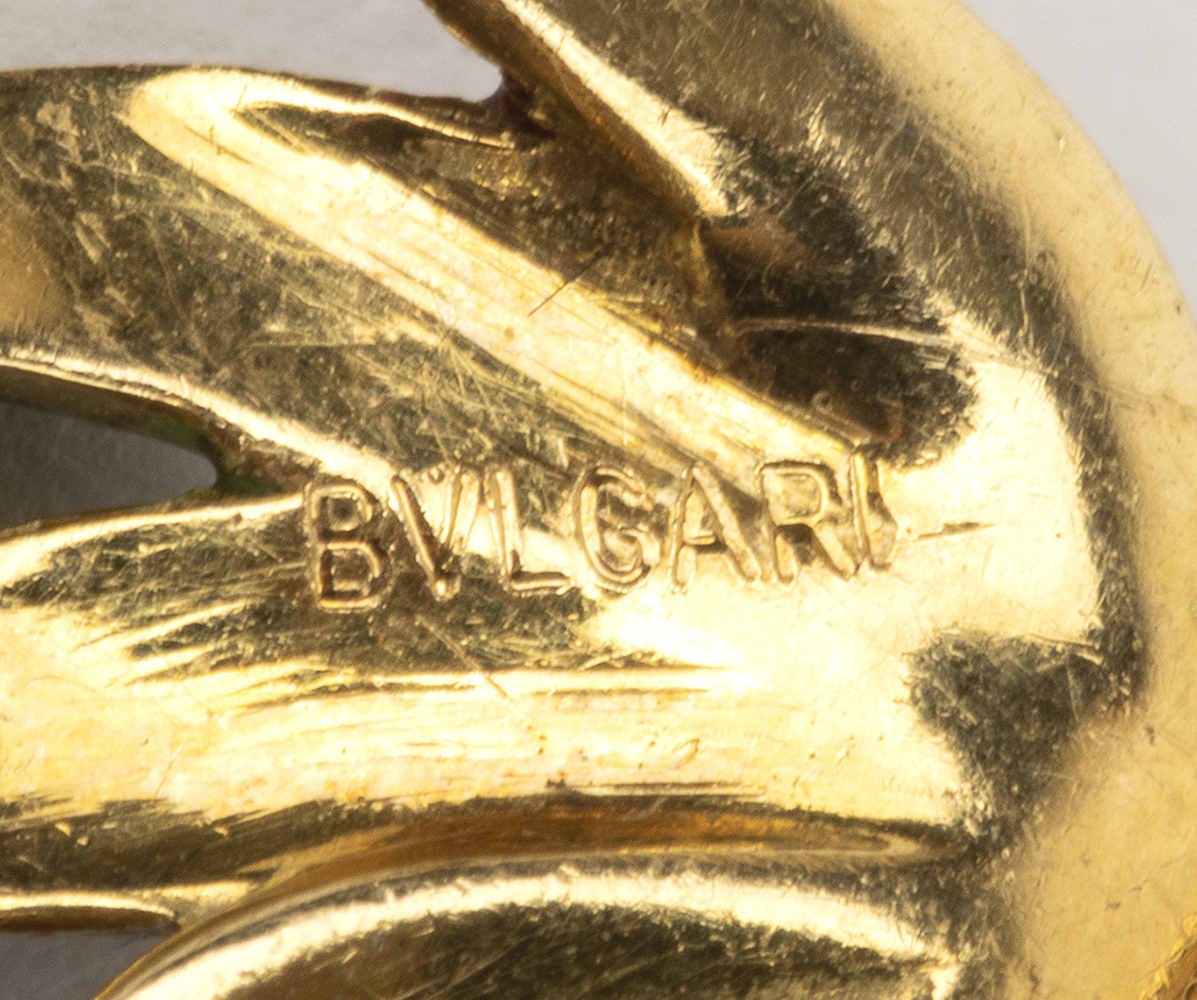 oro giallo 18k, decorata co applicazione di smalti policromi, occhio in piccolo brillante 0,10 ct circa, G, VVS. Reca firma BVLGARI.