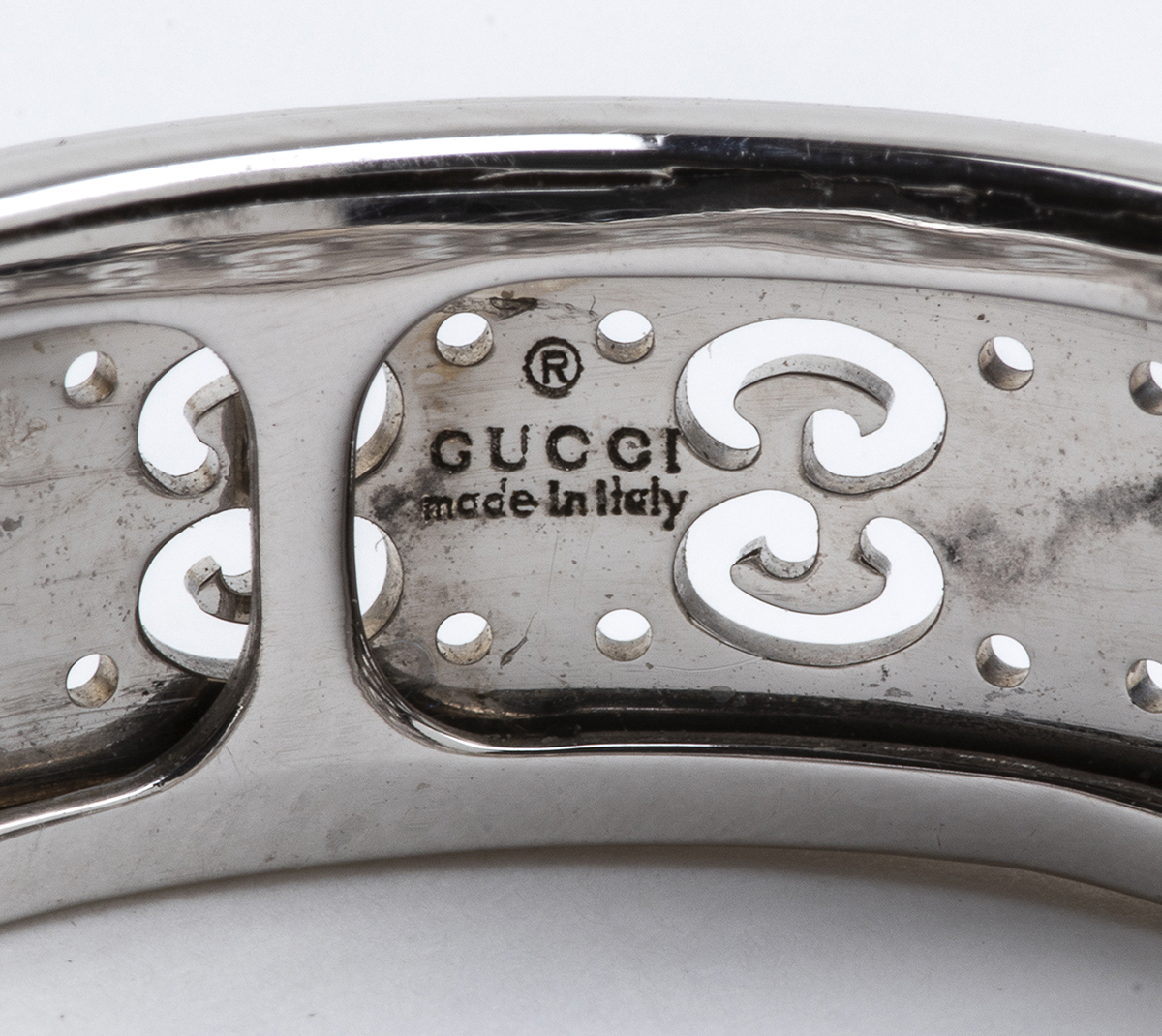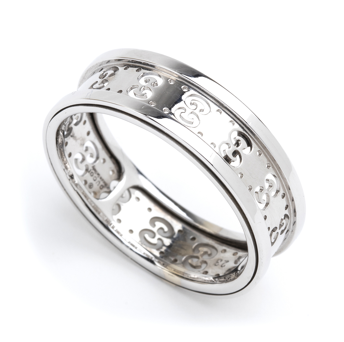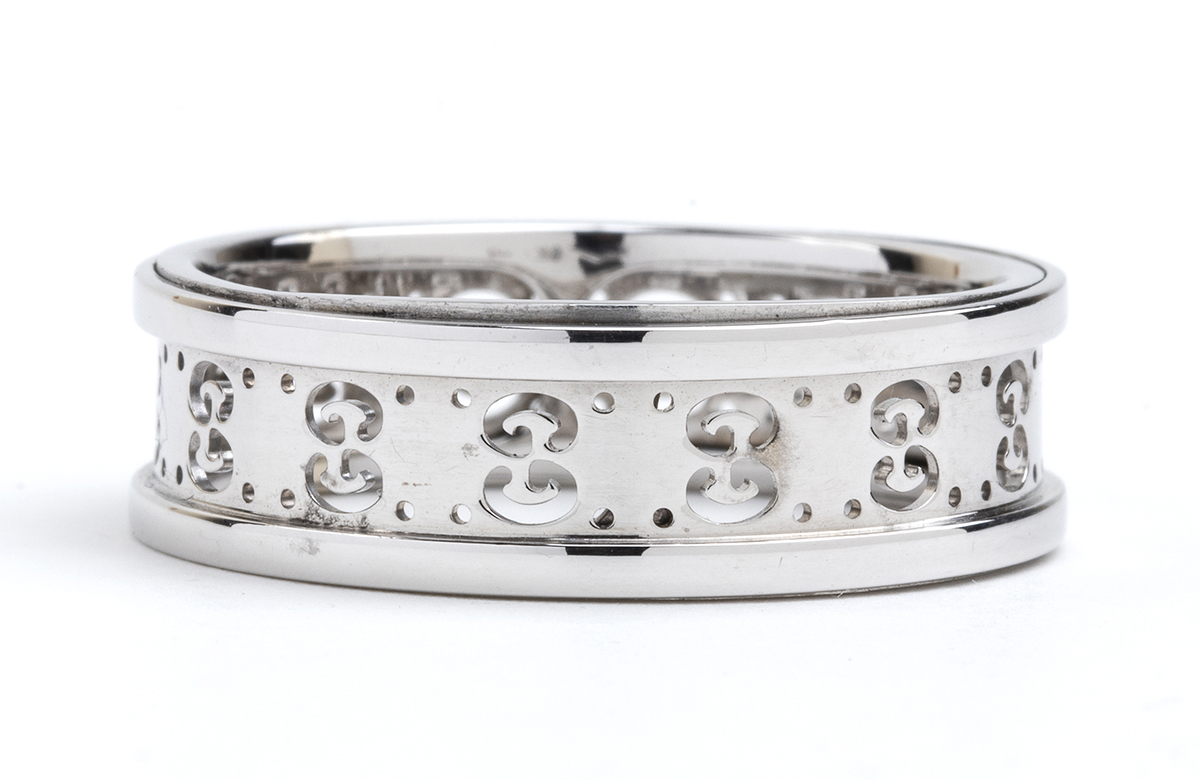 oro bianco 18k, motivo a fascia traforata. Punzonato "GUCCI - Made in Italy".