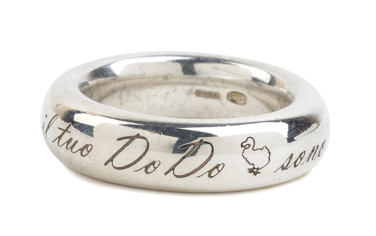 reca inscrizione: "sono il tuo Dodo". Argento 925/1000, punzonato "925 -1970 AL".