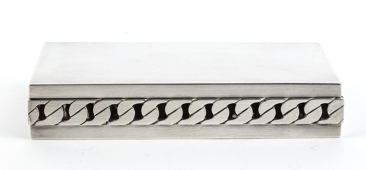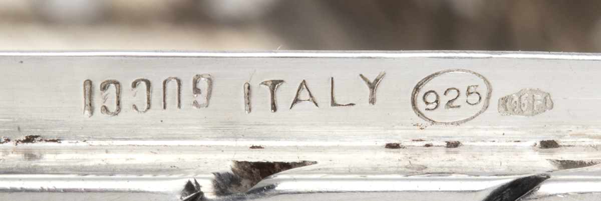 di forma rettangolare con fianchi a maglia traforata. Punzonato "GUCCI - Italy - 195FI".