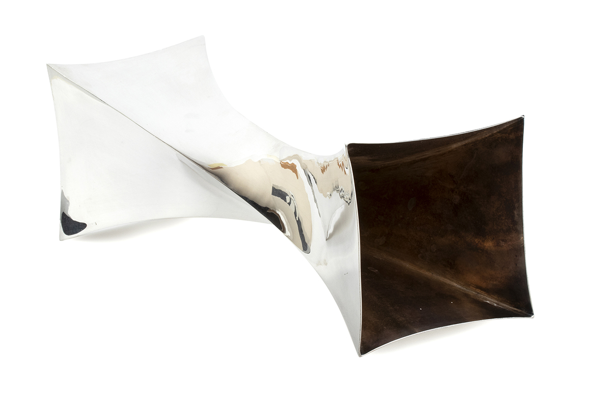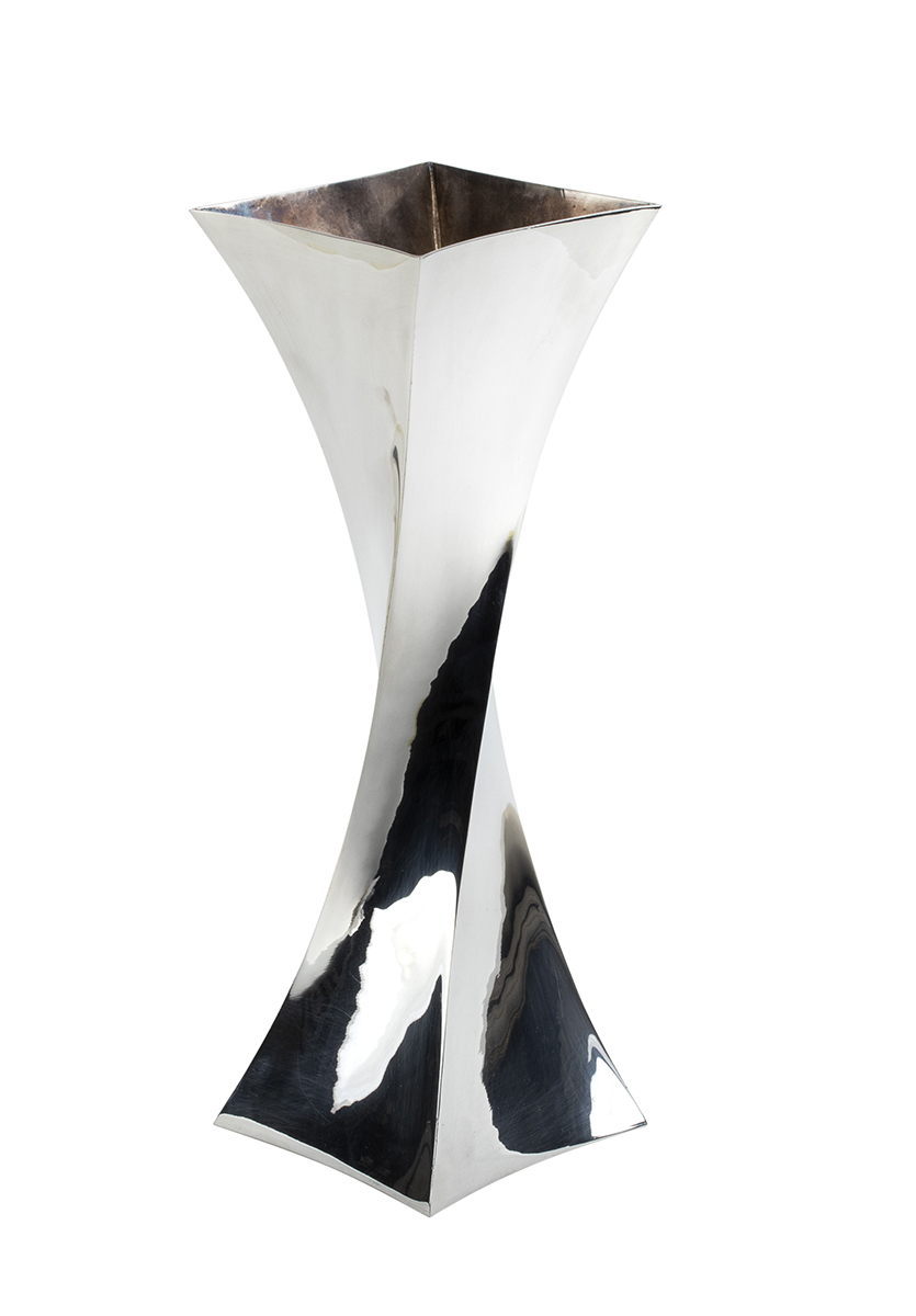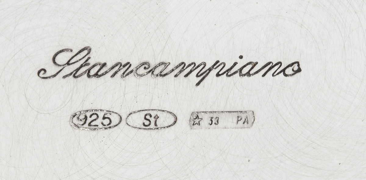 a base quadrata, il corpo ad andamento tortile. Argento 925/1000, punzonato "Stancampiano - stella 39 PA".