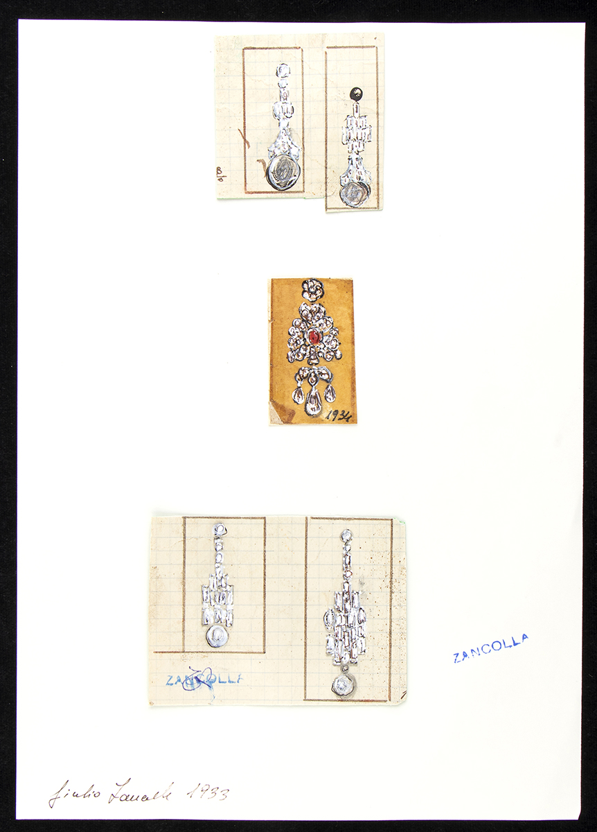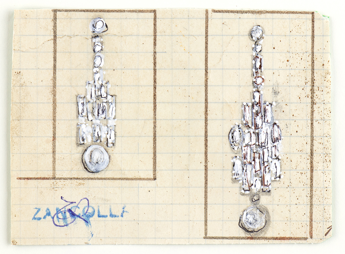 Lot 375 | Progetto per orecchini pendenti - anni '30, GIULIO ZANCOLLA disegnatore ed orafo per BULGARI dal 1933 al 1940