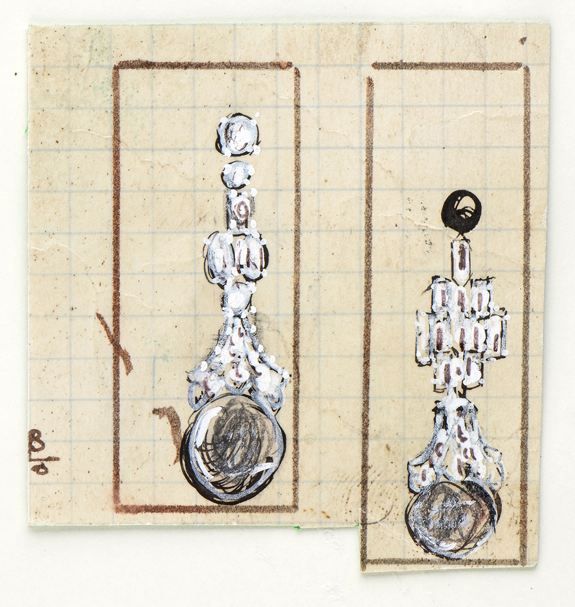 Progetto per orecchini pendenti - anni '30, GIULIO ZANCOLLA disegnatore ed orafo per BULGARI dal 1933 al 1940