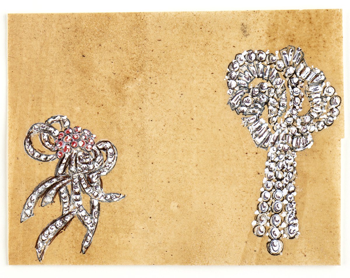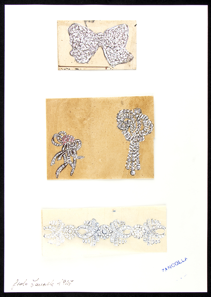 Progetto per spilla, bracciale ed orecchini - anni '40, GIULIO ZANCOLLA disegnatore ed orafo per BULGARI dal 1933 al 1940