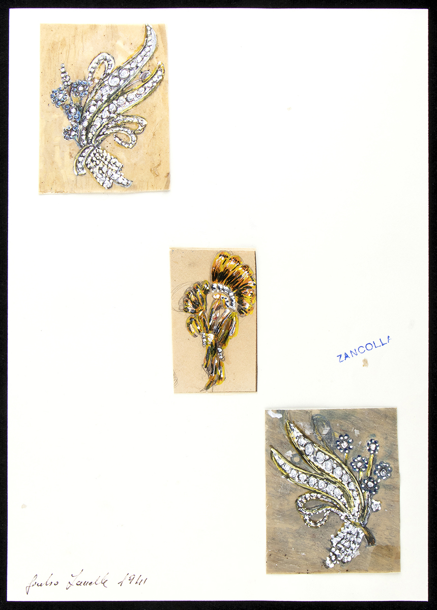 Progetto per spille floreali - anni '40, GIULIO ZANCOLLA disegnatore ed orafo per BULGARI dal 1933 al 1940