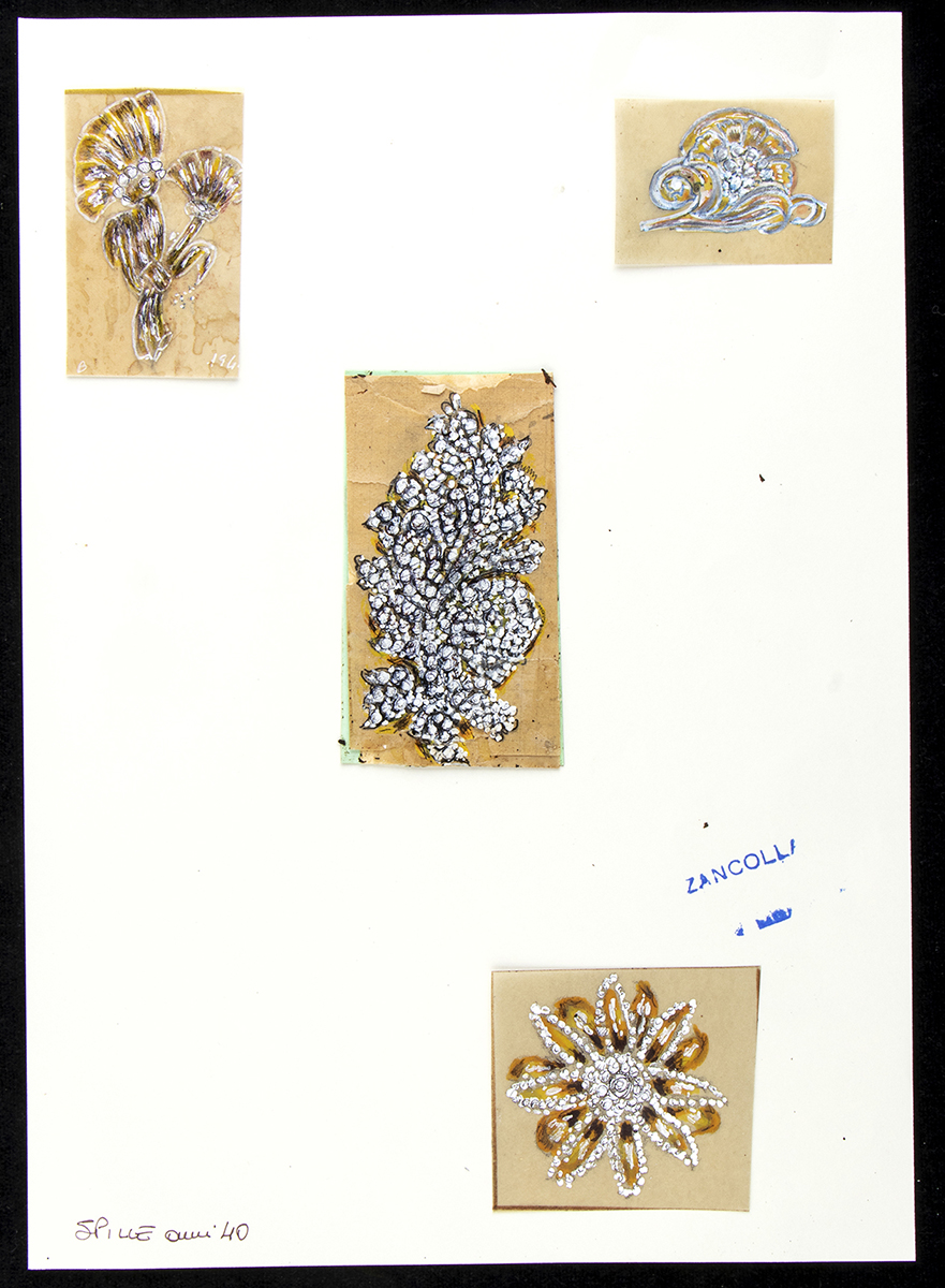 Progetto per spille - anni '40, GIULIO ZANCOLLA disegnatore ed orafo per BULGARI dal 1933 al 1940