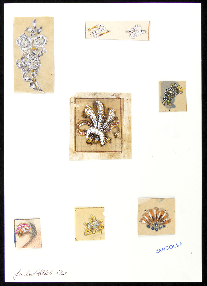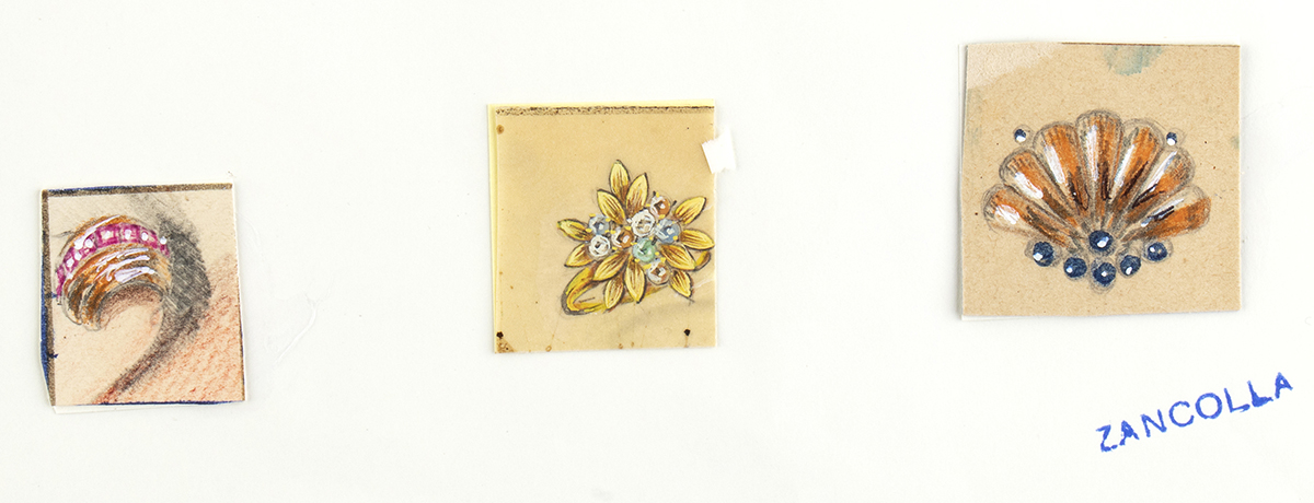 Progetto per spille ed anelli - anni '40, GIULIO ZANCOLLA disegnatore ed orafo per BULGARI dal 1933 al 1940