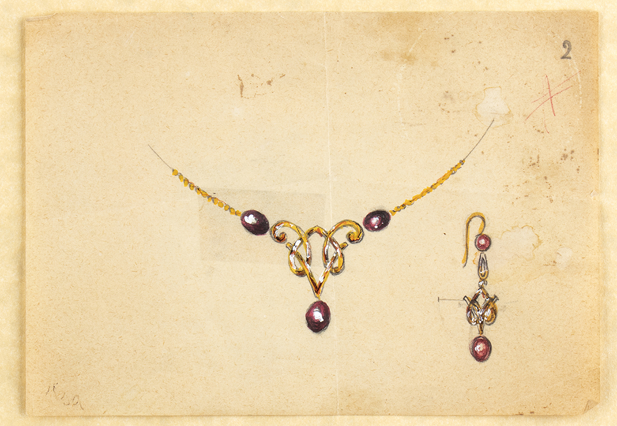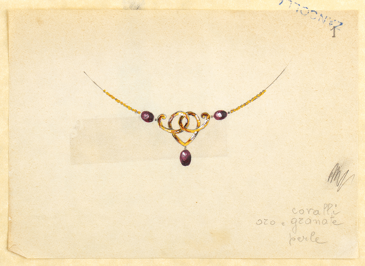 Progetto per collane ed orecchino - anni '50, GIULIO ZANCOLLA disegnatore ed orafo per BULGARI dal 1933 al 1940