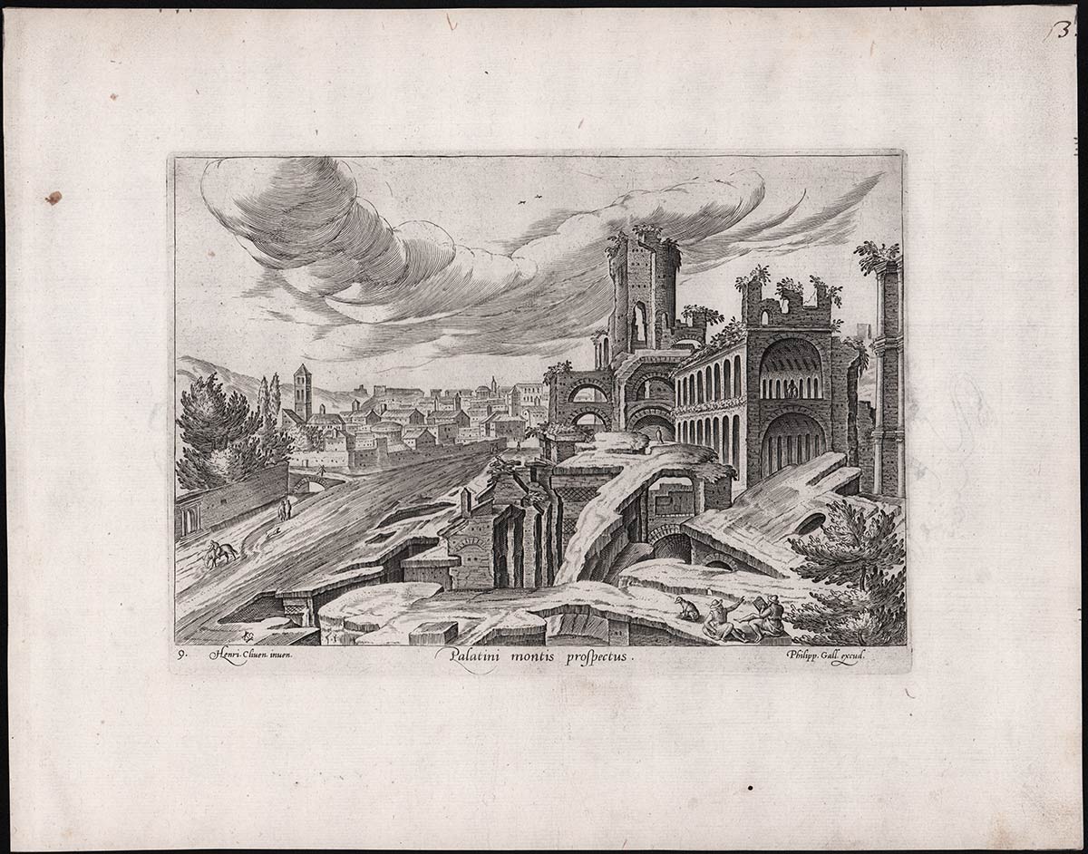 Veduta tratta dalla raccolta "Ruinarum varii prospectus, ruriumque aliquot delineationes" pubblicata da Philip Galle. Le incisioni sono tratte da disegni di Hendrick van Cleve o Cliven; la firma di Philip Galle appare su tutte le incisioni mentre quella di suo figlio Theodoor si vede solo su una, ma anche lo stesso Van Cleve potrebbe essere stato l'incisore delle lastre.