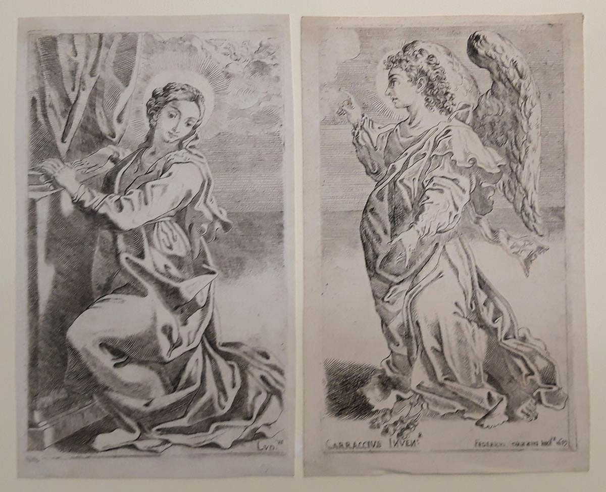 Unico stato conosciuto, con la firma del Maestro visibile in basso a destra. La composizione è eseguita in due lastre separate. Unica testimonianza grafica del pittore piemontese derivano entrambe non già da un'opera di Ludovico, come scritto dal Guazzi in basso lungo il margine e riportato nei cataloghi della collezione, ma dalle due tele di Annibale Carracci con La Vergine e L'Angelo annunciante, provenienti dalla sacrestia della Madonna di Galliera e oggi in Pinacoteca Nazionale a Bologna De vesme pag.346 n.ri 1 e 2. Borea pag. 18.