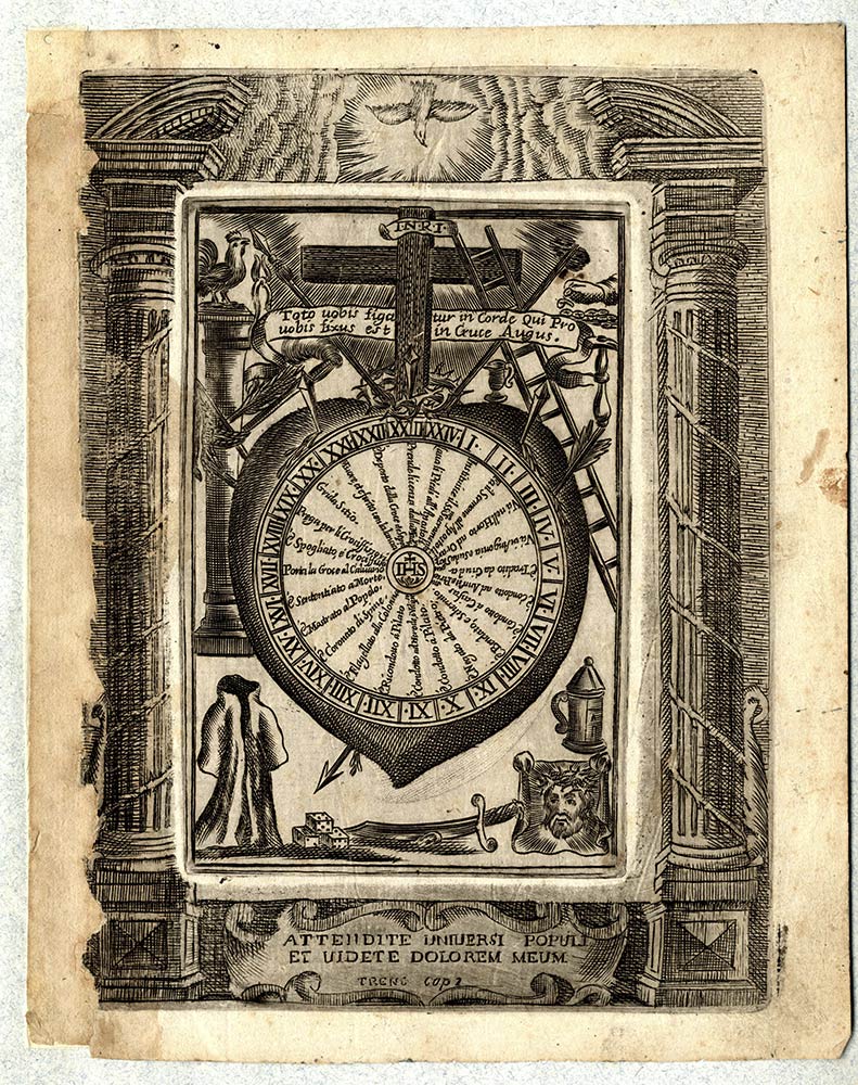 Frontespizio + 12 tavole tratte da " L'orologio della passione di Cristo, 1660 ca.