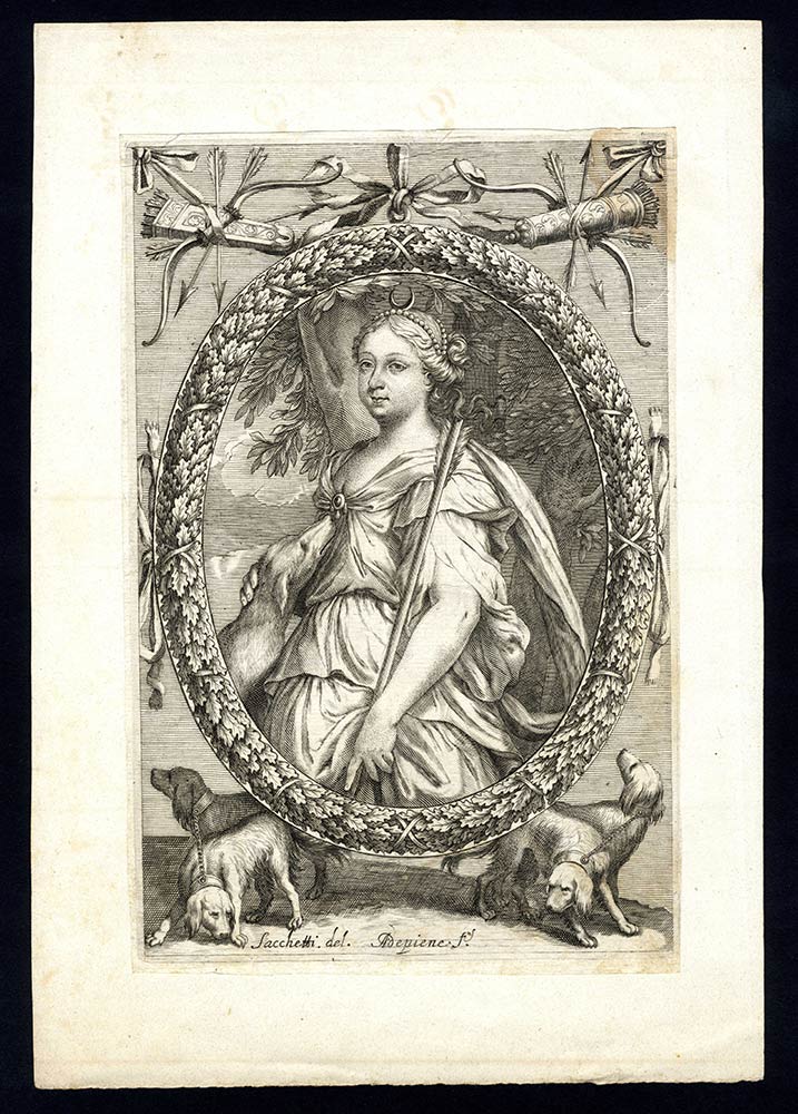 ANTOINE DE PIENNE ( ATTIVO METÀ XVII SEC.) DA GIOVANNI FRANCESCO SACCHETTI (1663-1720): Diana cacciatrice, ovvero Maria Giovanna Battista Duchessa di Savoia-Nemours