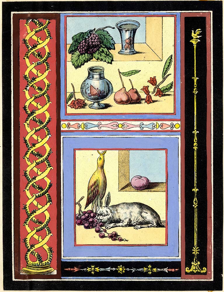 Delineati stampati in litografia, perfezionati con intensa e bella coloritura a tempera coeva con il classico fondo nero: