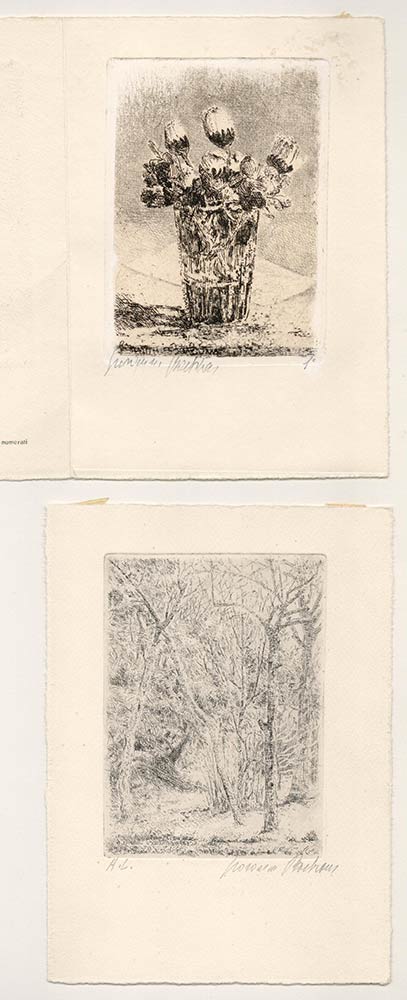 "Vaso con fiori", la prima tiratura, firmata e numerata a matita in basso:: 1°; "Il bosco", prova d'autore, tiratura e firma a mattita in basso.