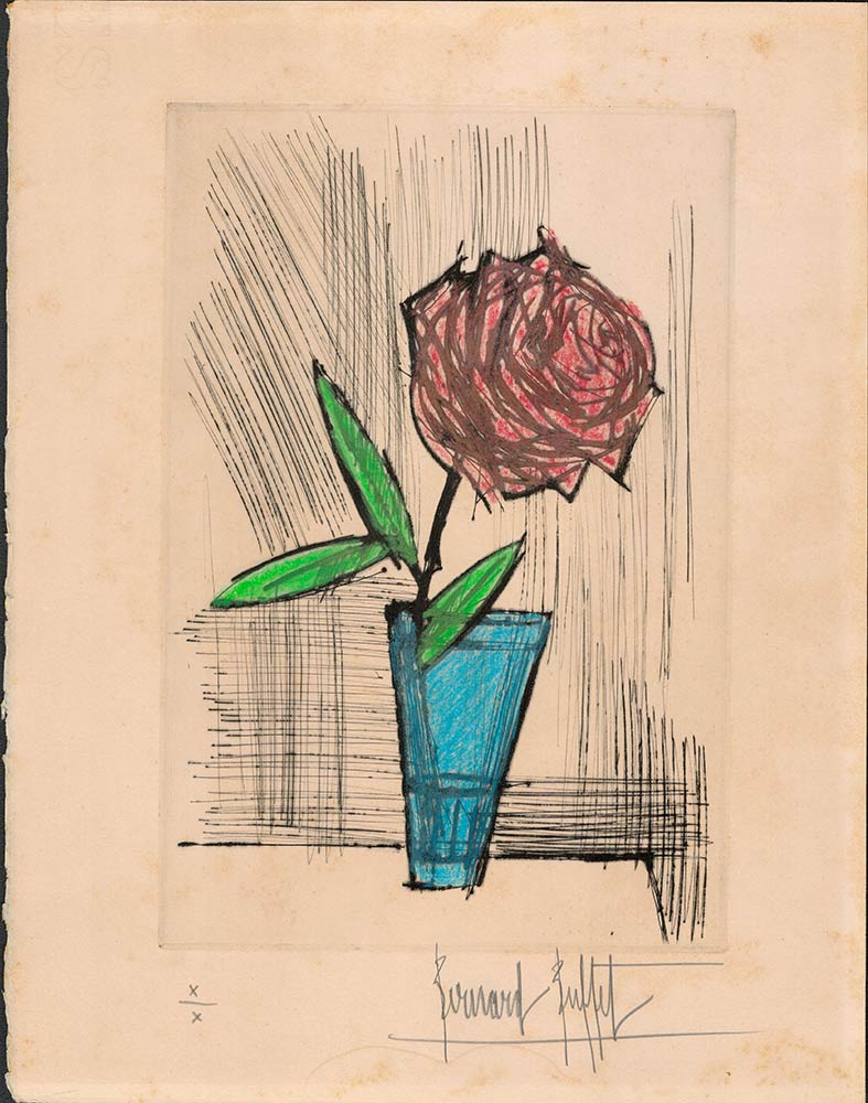 BERNARD BUFFET (1928-1999): Vaso con rosa