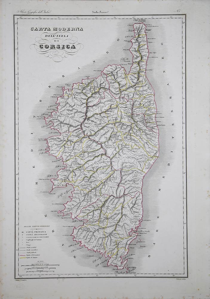 ATTILIO ZUCCAGNI ORLANDINI (1784 - 1872): Carta Moderna dell'Isola di Corsica