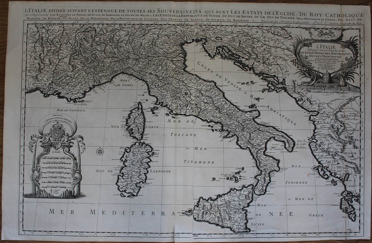 GUILLAUME SANSON (1633-1703): L'Italie distinguée suivant l'estendue de tous les estats, royaumes, republiques, duchés, principautés, etc qui la partagent présentement