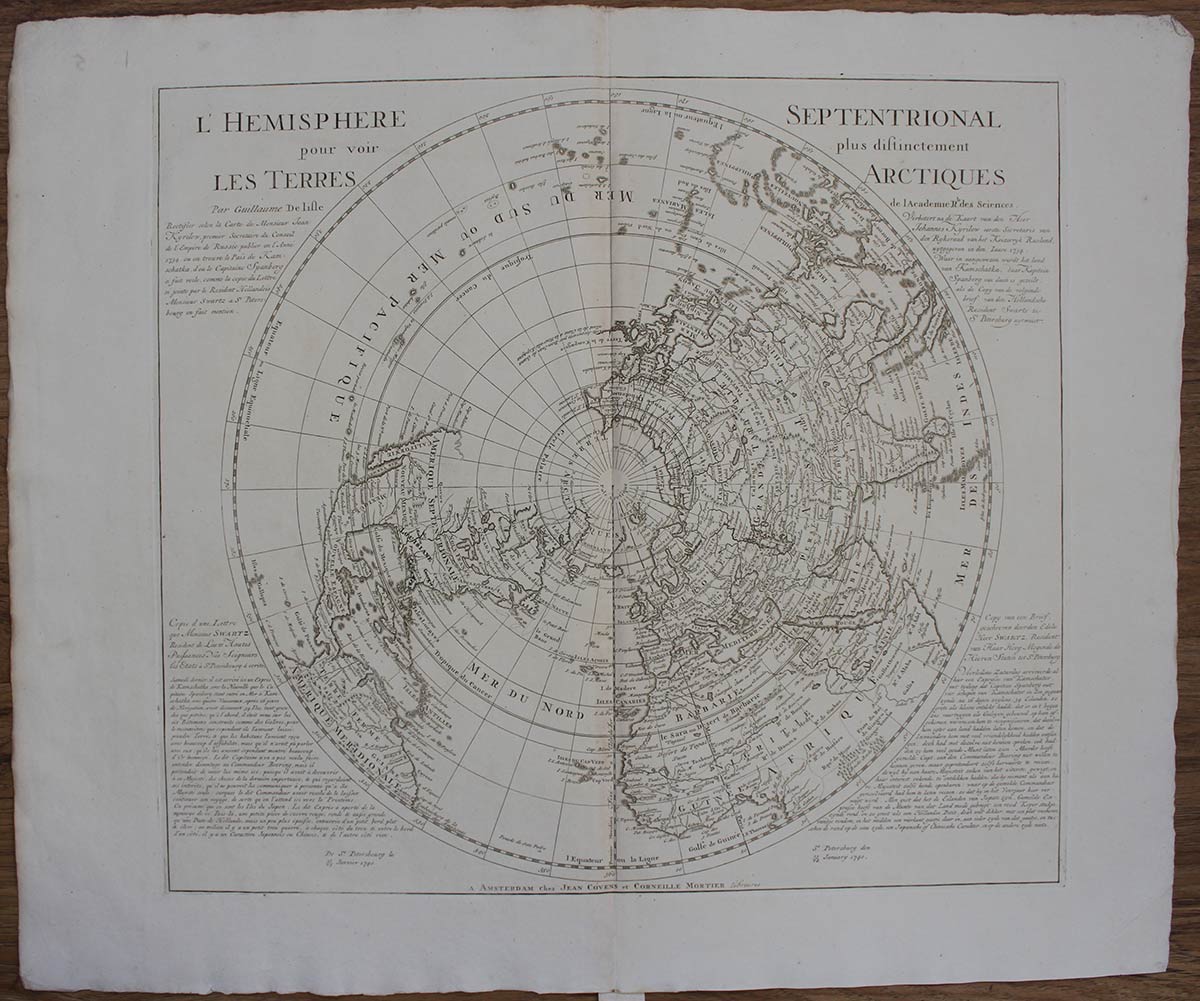 GUILLAUME DELISLE (1675-1726): Hémisphère septentrional pour voir plus distinctement les terres Arctiques