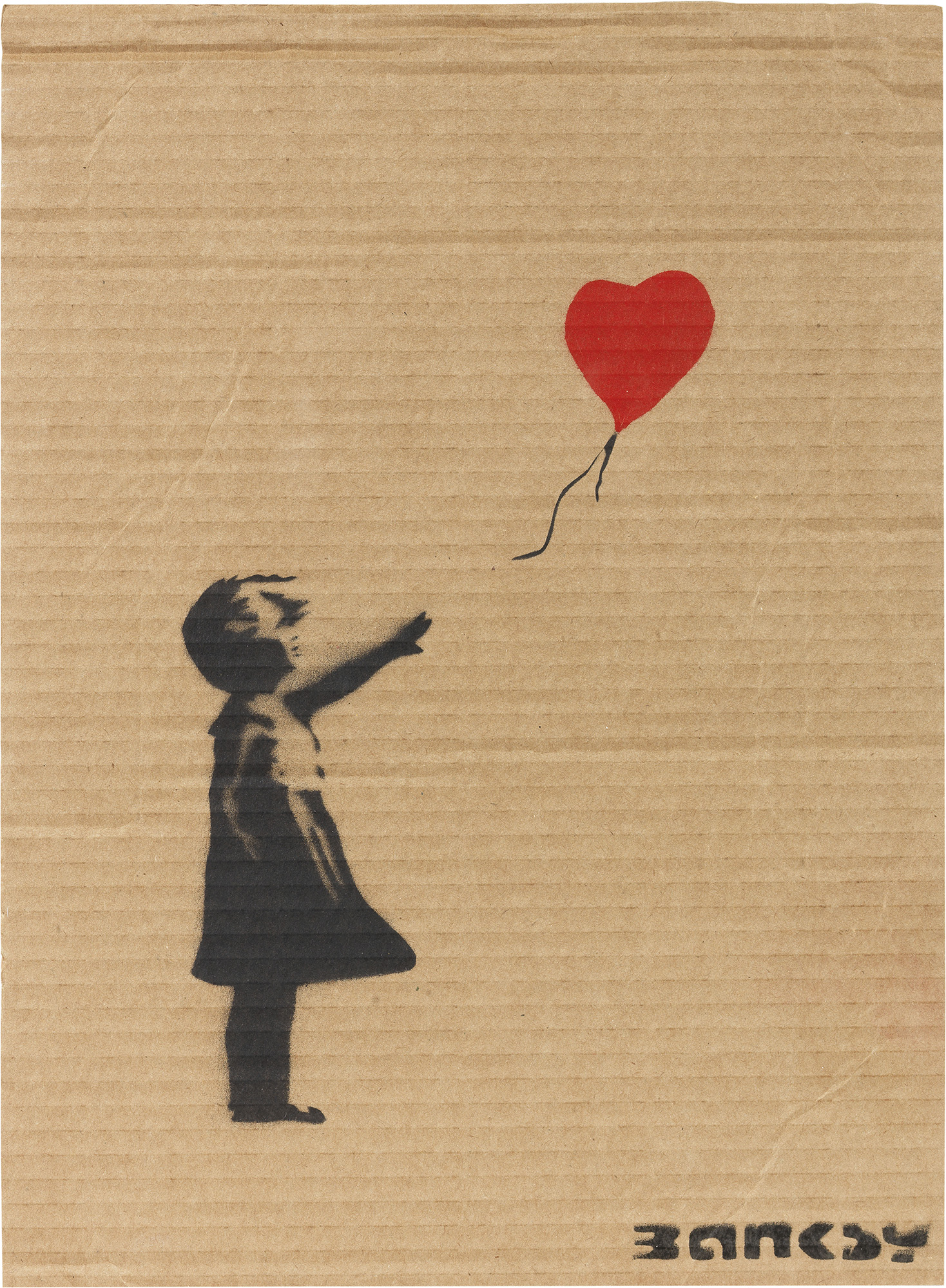 Firma a stencil in basso a destra: Banksy; scritta e tiratura al verso: Enjoy / your free / art / Banksy is Dismal / 77/100: timbro Dismaland Bemusement Park.