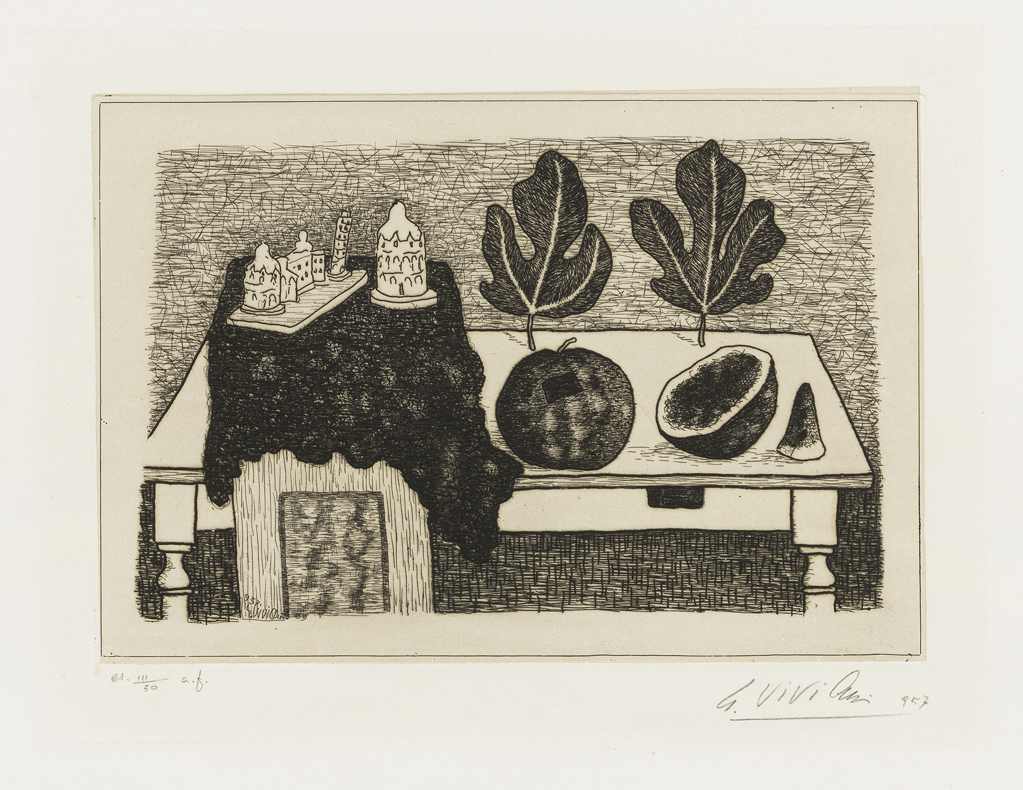 Data e firma in lastra in basso a sinistra: 957 / Viviani by, firma e data a matita sul margine in basso a destra: G. Viviani / 957, tiratura in basso a sinistra: es III/50 a.p.