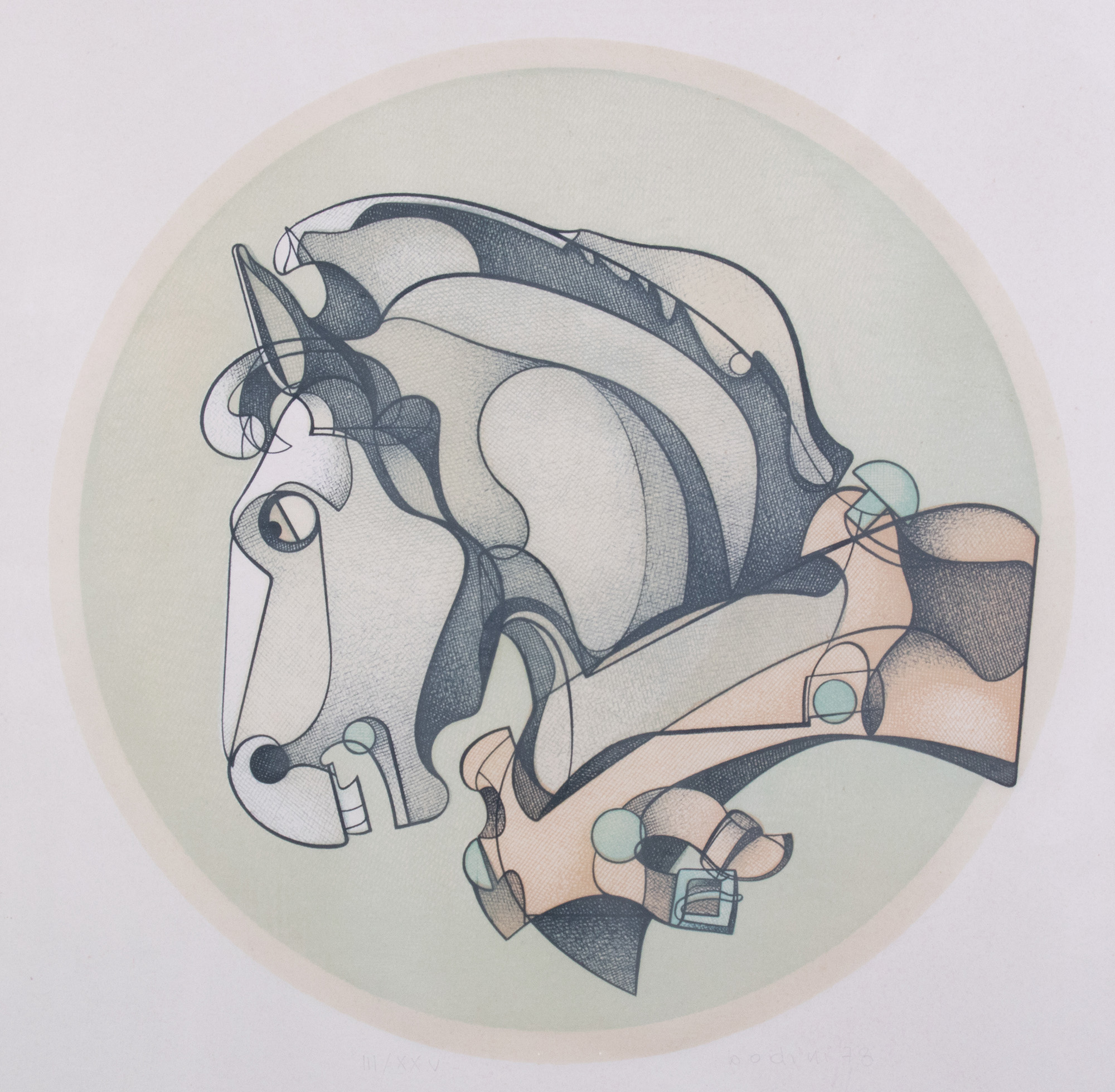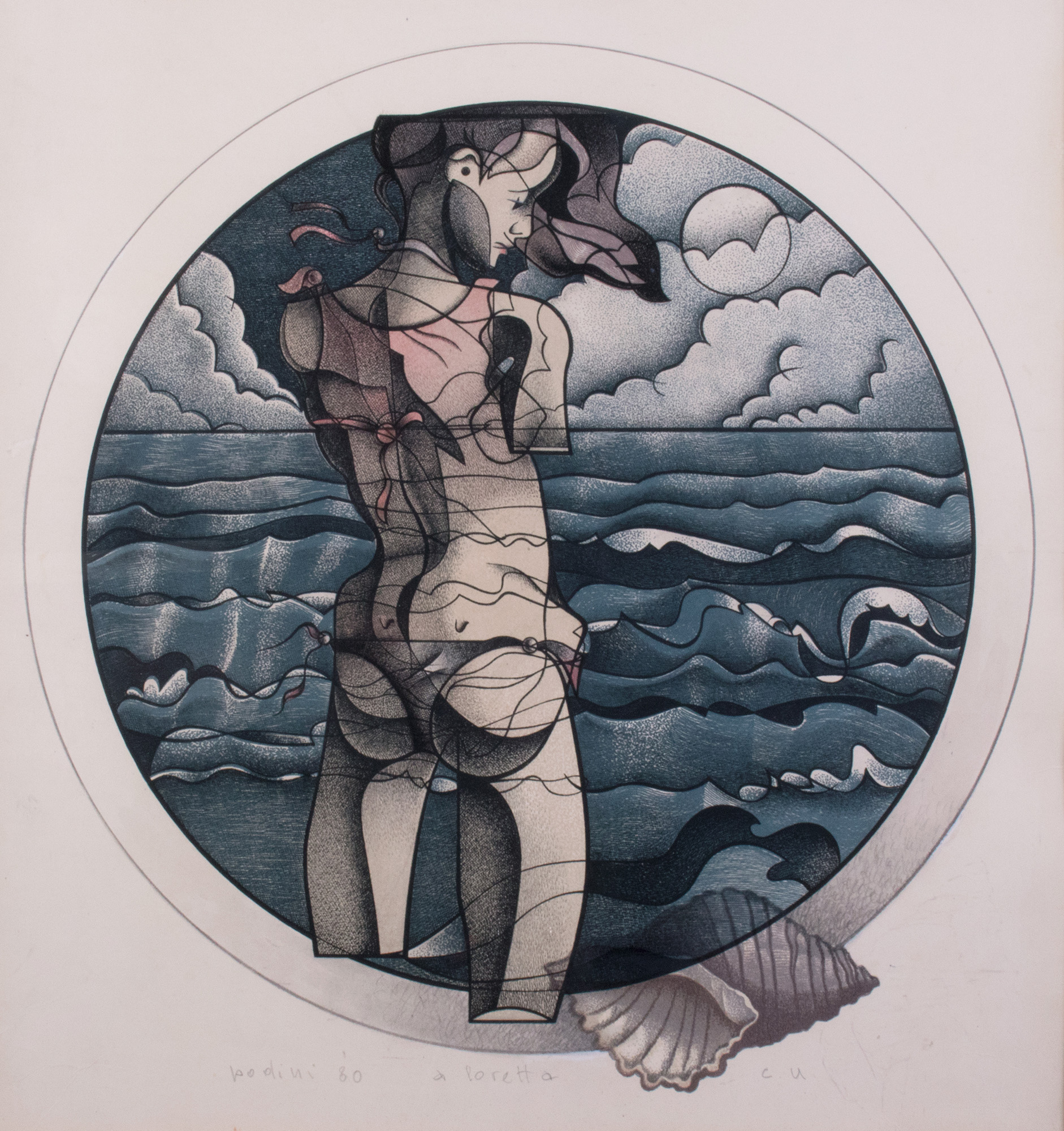 B) Senza titolo, 1978, acquatinta a colori, es. III/XXV, cm. 68x48 (luce). Firma e data a matita sul margine in basso verso destra: Bodini 78, tiratura in basso verso sinistra: III/XXV.