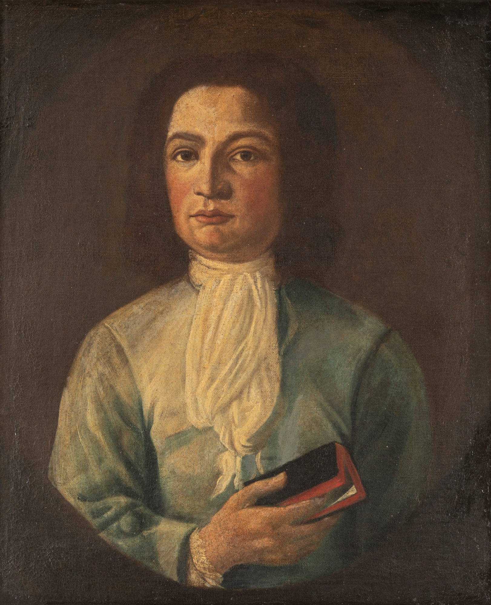 Scuola dell'Italia settentrionale, secolo XVIII - Ritratto di gentiluomo, a mezzo busto, con libro in mano