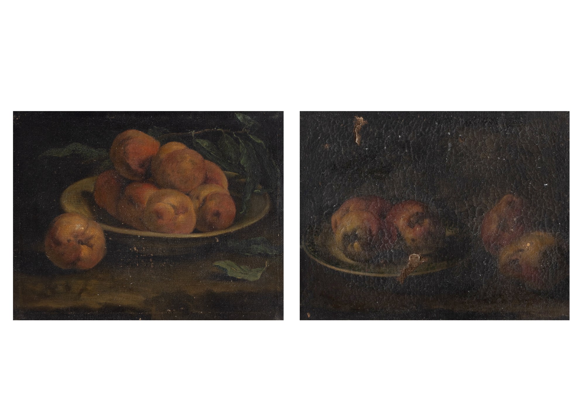 Scuola lombarda, secolo XVII - Pesche in un piatto; e Mele in un piatto (en pendant)