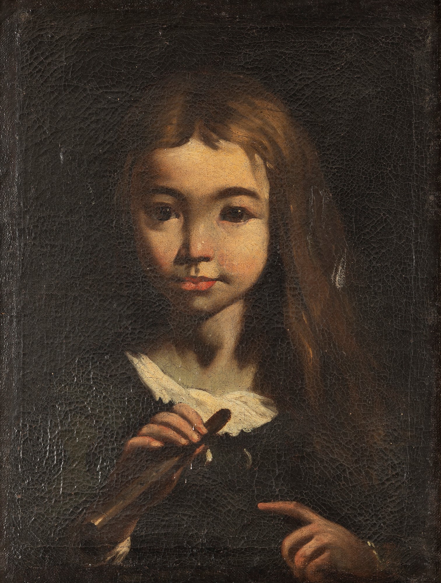Scuola dell'Italia settentrionale, secolo XVII - Ritratto di bambina con flauto in mano