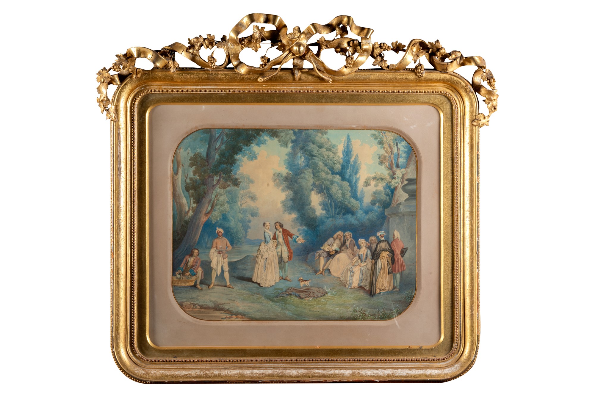 tempera su carta, entro passepartout e cornici coeve con fiocco sulla sommità