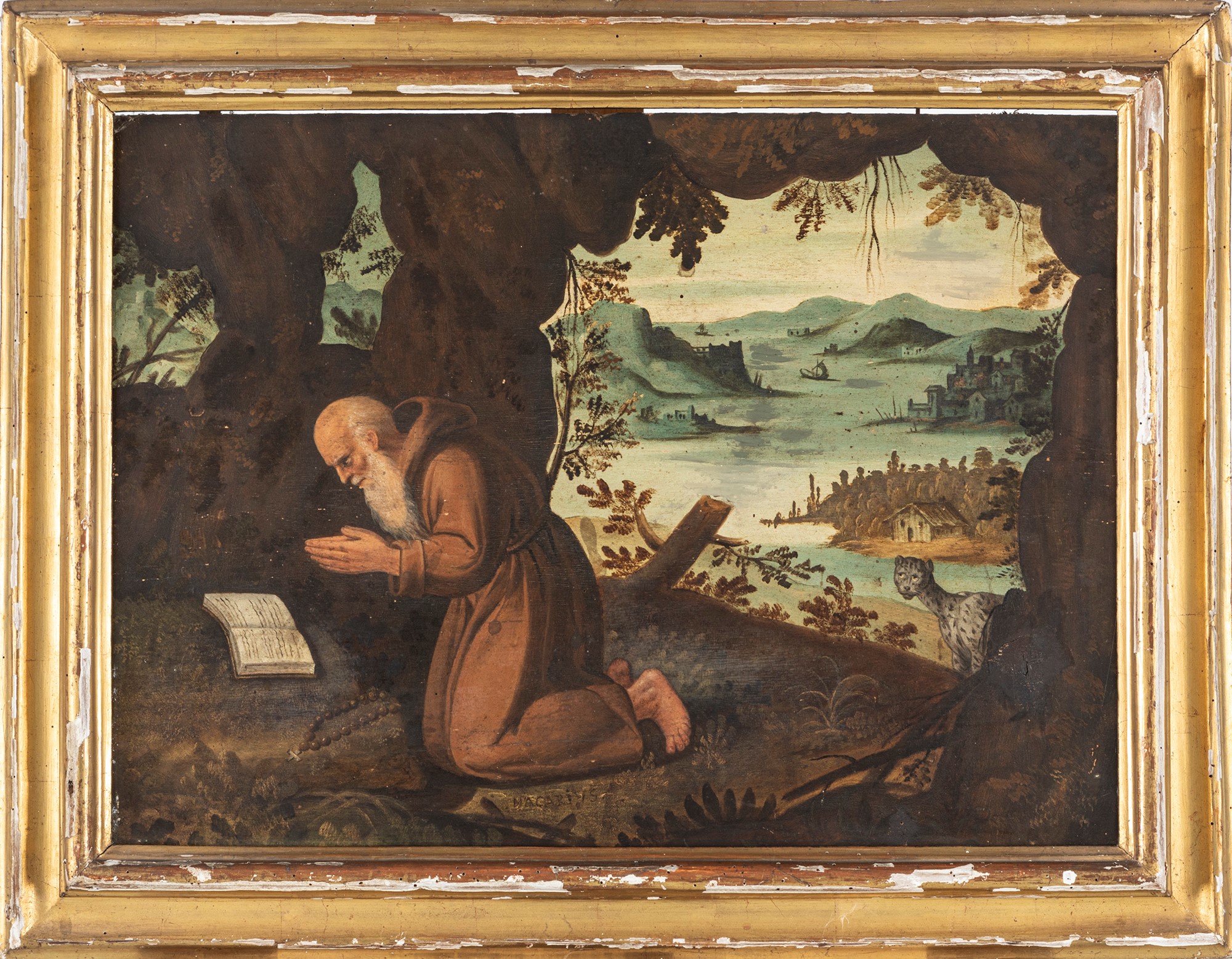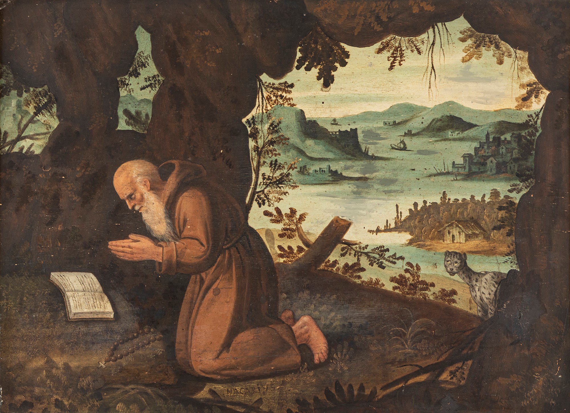 Scuola dell'Italia settentrionale, fine secolo XVI - inizi secolo XVII - Paesaggio con padre eremita