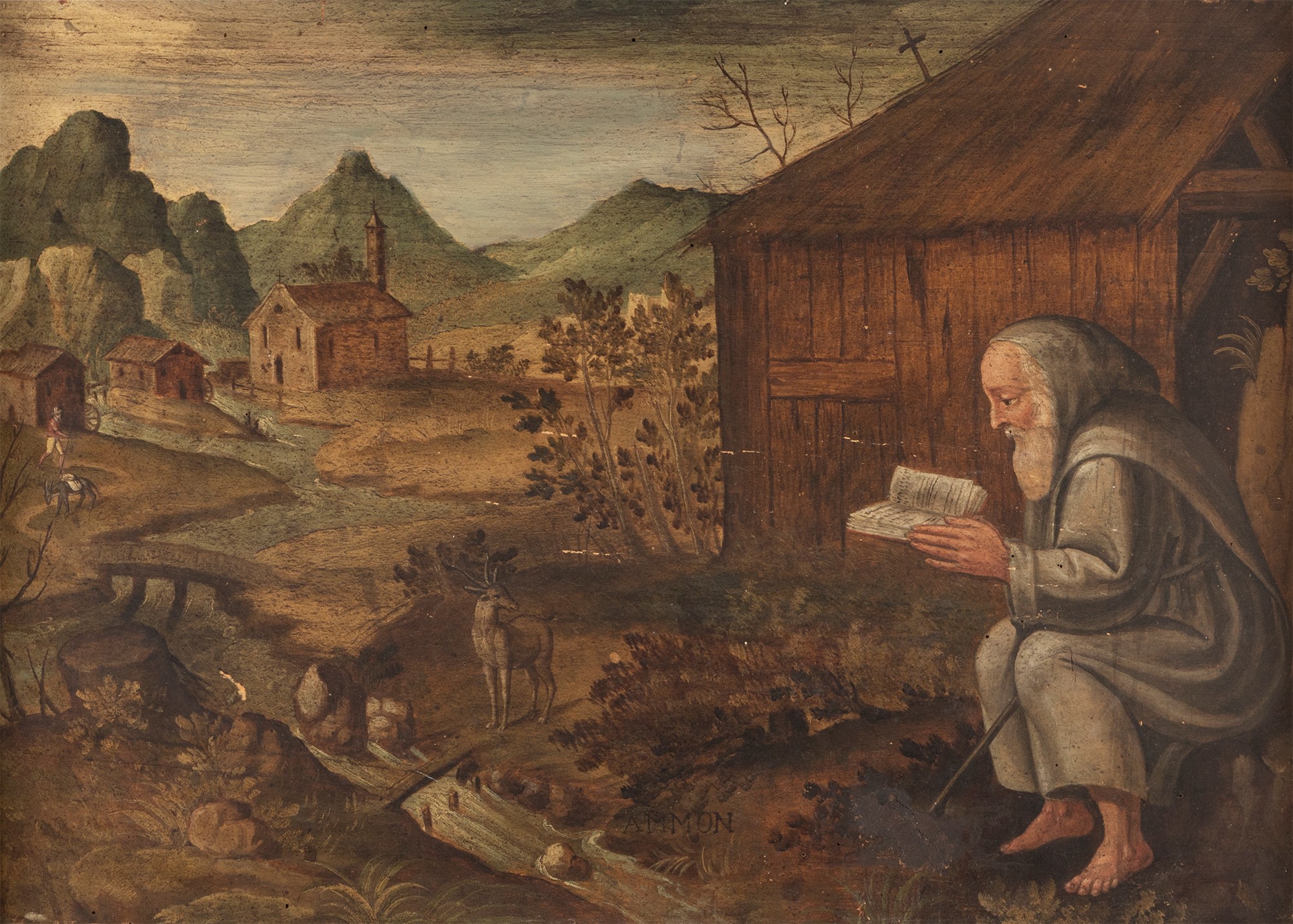 Scuola dell'Italia settentrionale, fine secolo XVI - inizi secolo XVII - Paesaggio con padre eremita