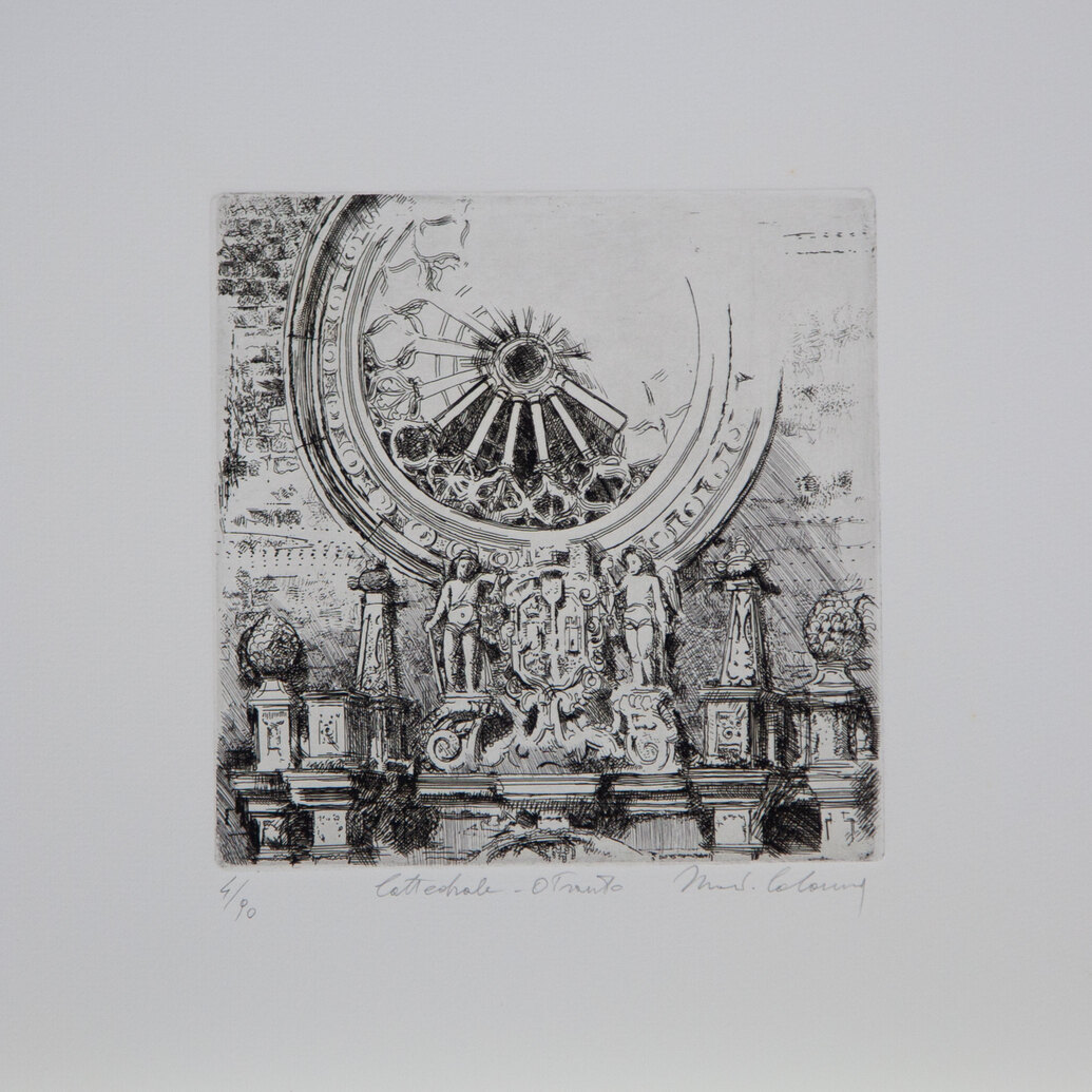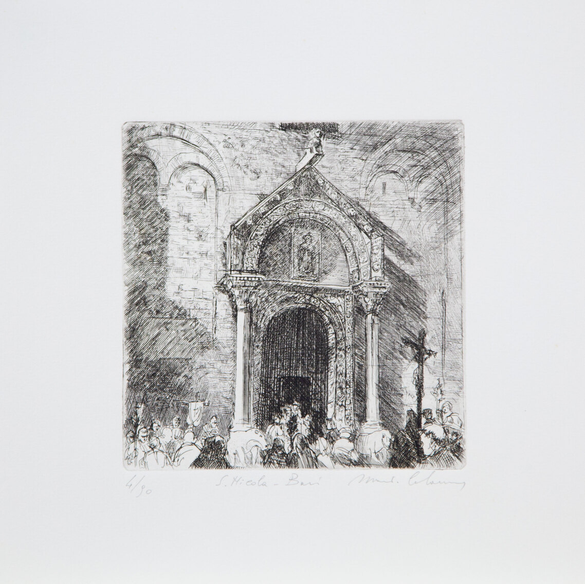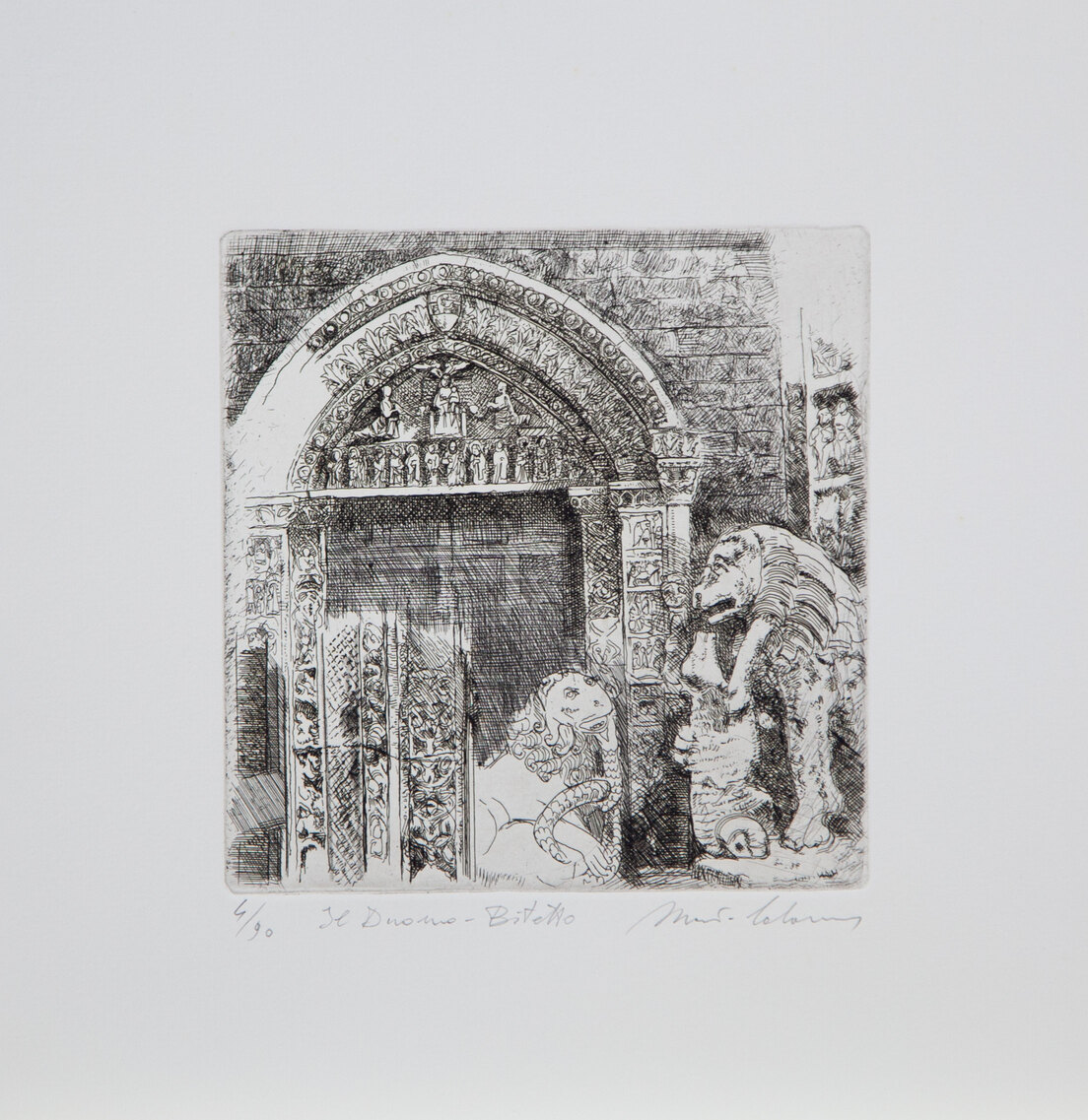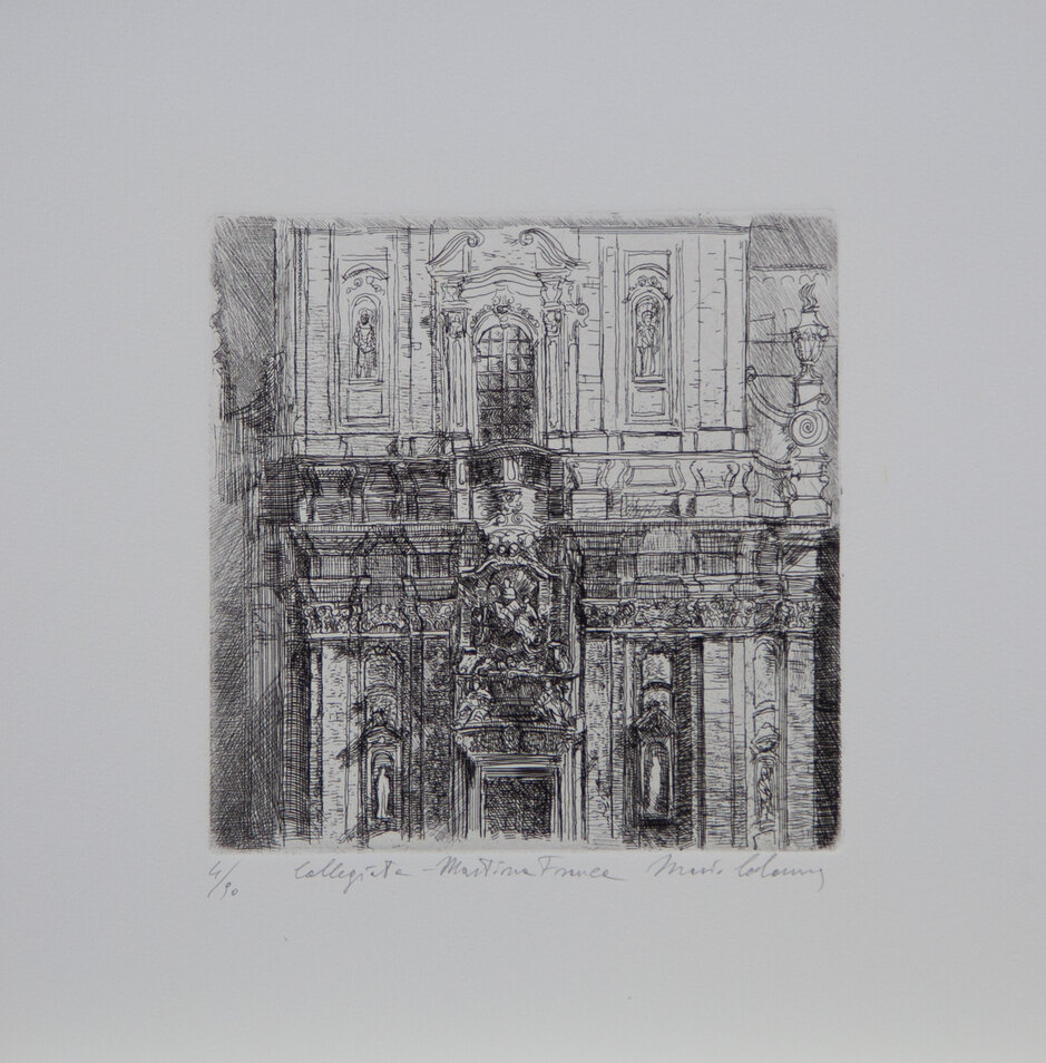 COLONNA MARIOCartella di n. 6 acqueforti edita dalla Galleria Arte Spazio di Bari dal titolo 'Portali di Puglia'tutte le acqueforti cm 28x28, edizione n. 4/90, firmate in basso a destra, numerate in basso a sinistra.
