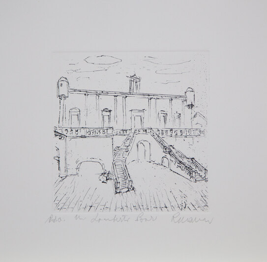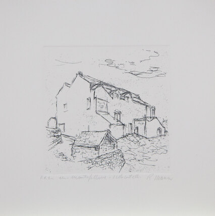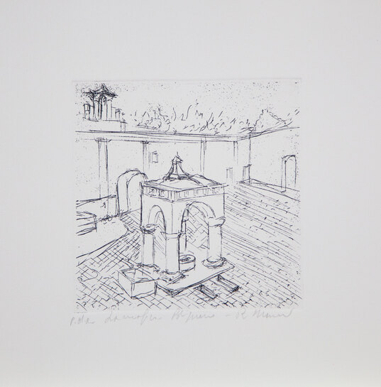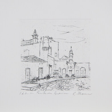 MANNI ROBERTOCartella di n. 6 acqueforti edita dalla Galleria Arte Spazio di Bari dal titolo 'Masserie di Puglia', tutte le acqueforti cm 28x28, edizione P.D.A., firmate in basso a destra, numerate in basso a sinistra.