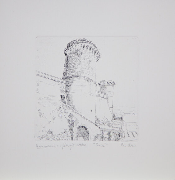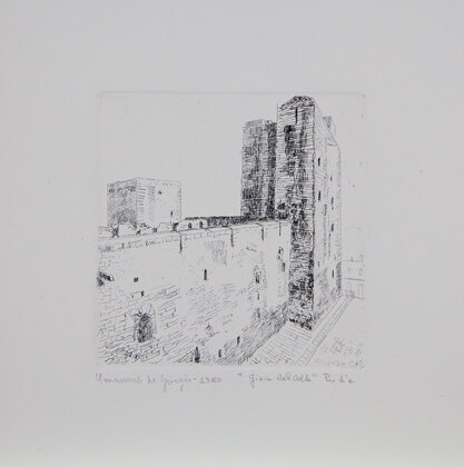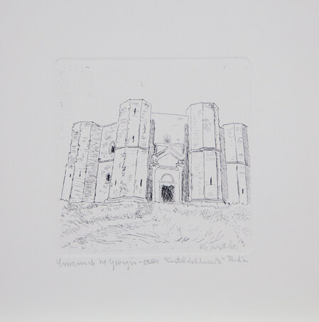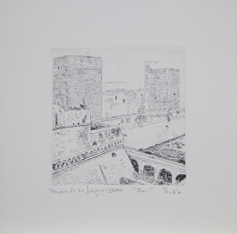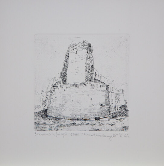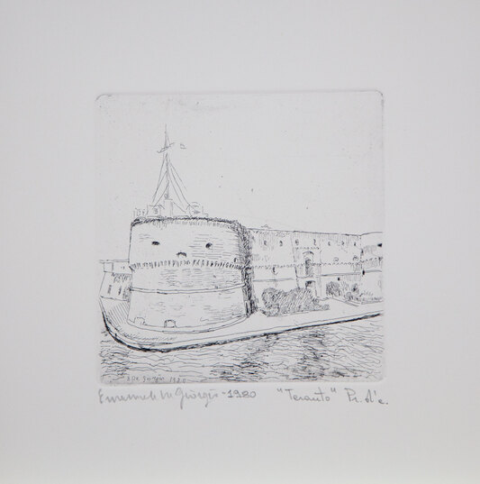 DE GIORGIO EMANUELECartella di n. 6 acqueforti edita dalla Galleria Arte Spazio di Bari dal titolo 'Castelli di Puglia' tutte le acqueforti cm 28x28, edizione P.D.A., firmate in basso a sinistra, numerate in basso a destra.