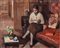 FRANCESCO GALANTE(MARGHERITA DI SAVOIA 1884 - NAPOLI 1972)'Lettura'olio su tavolacm 21x26firmato in basso a destraal retro: etichetta Galleria Lauro - Napoli + etichetta Mostra d'Arte Galleria Lauro + vari timbri Gallerie